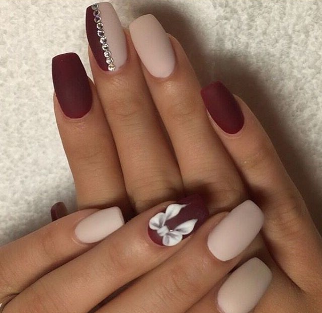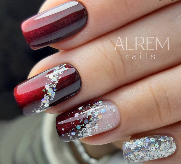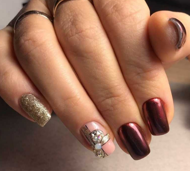 Винные оттенки в разнообразном дизайне могут сочетаться и с другими цветами. В каждом сезоне есть свои актуальные и удачные тандемы, без которых ни один нейл-дизайн нельзя назвать модным и стильным.