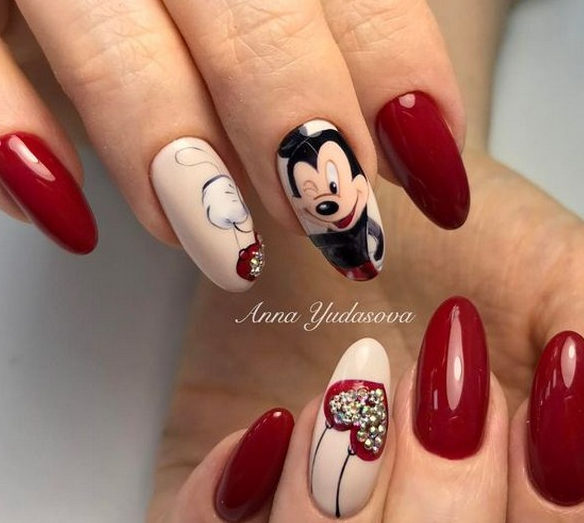 Рисунки — это возможность сделать маникюр индивидуальным. К услугам модниц огромное количество вариантов выполнения рисунков — трафареты, наклейки, кисти и целая палитра лаков. Анималистические принты, флористические мотивы, герои любимых мультиков или обычные горошинки — все в ваших руках.