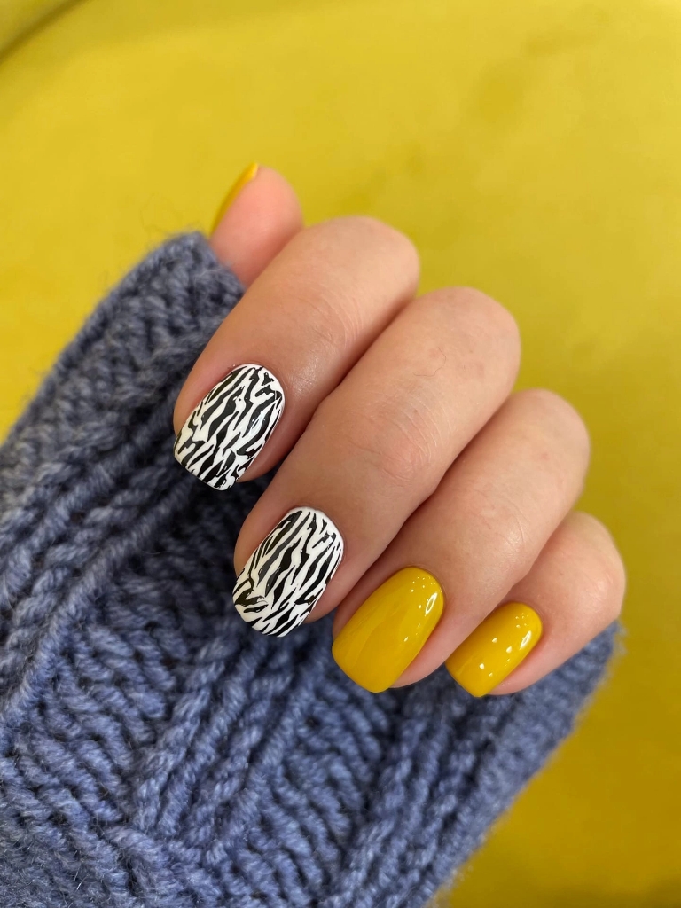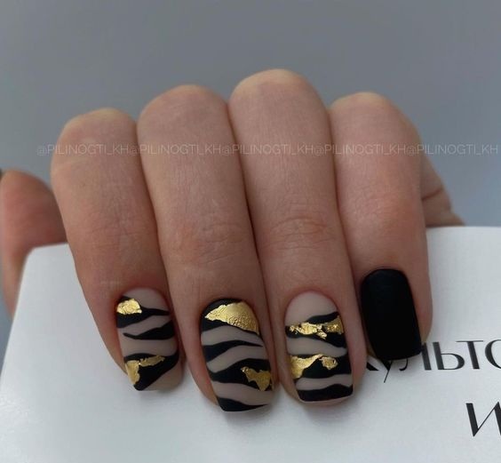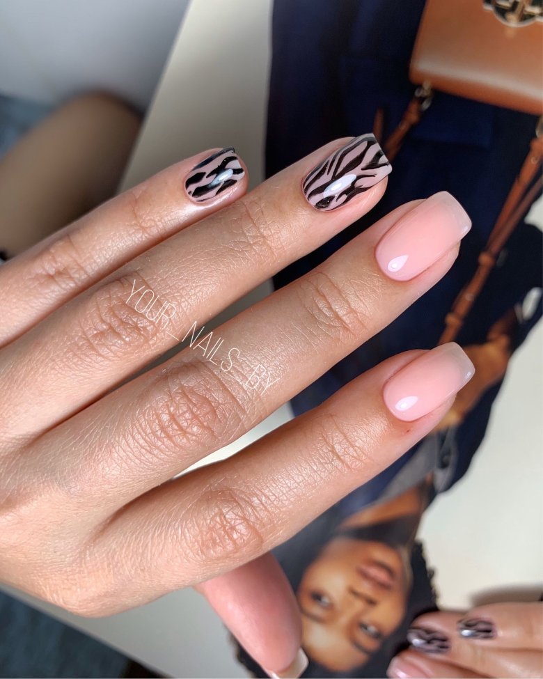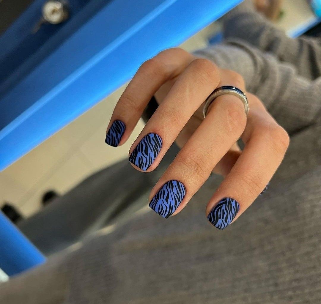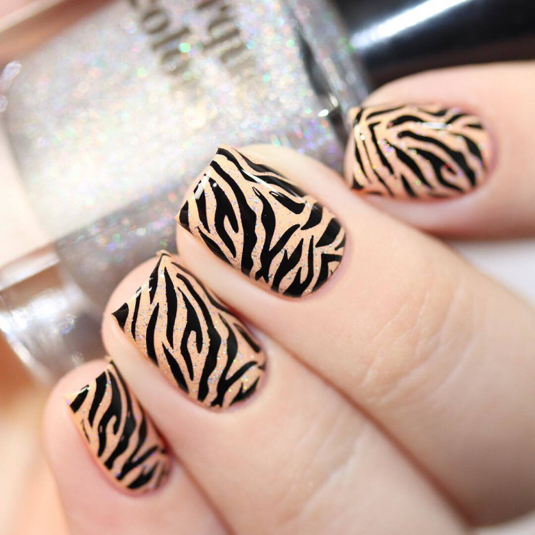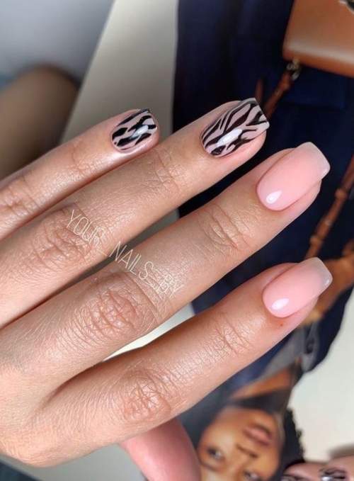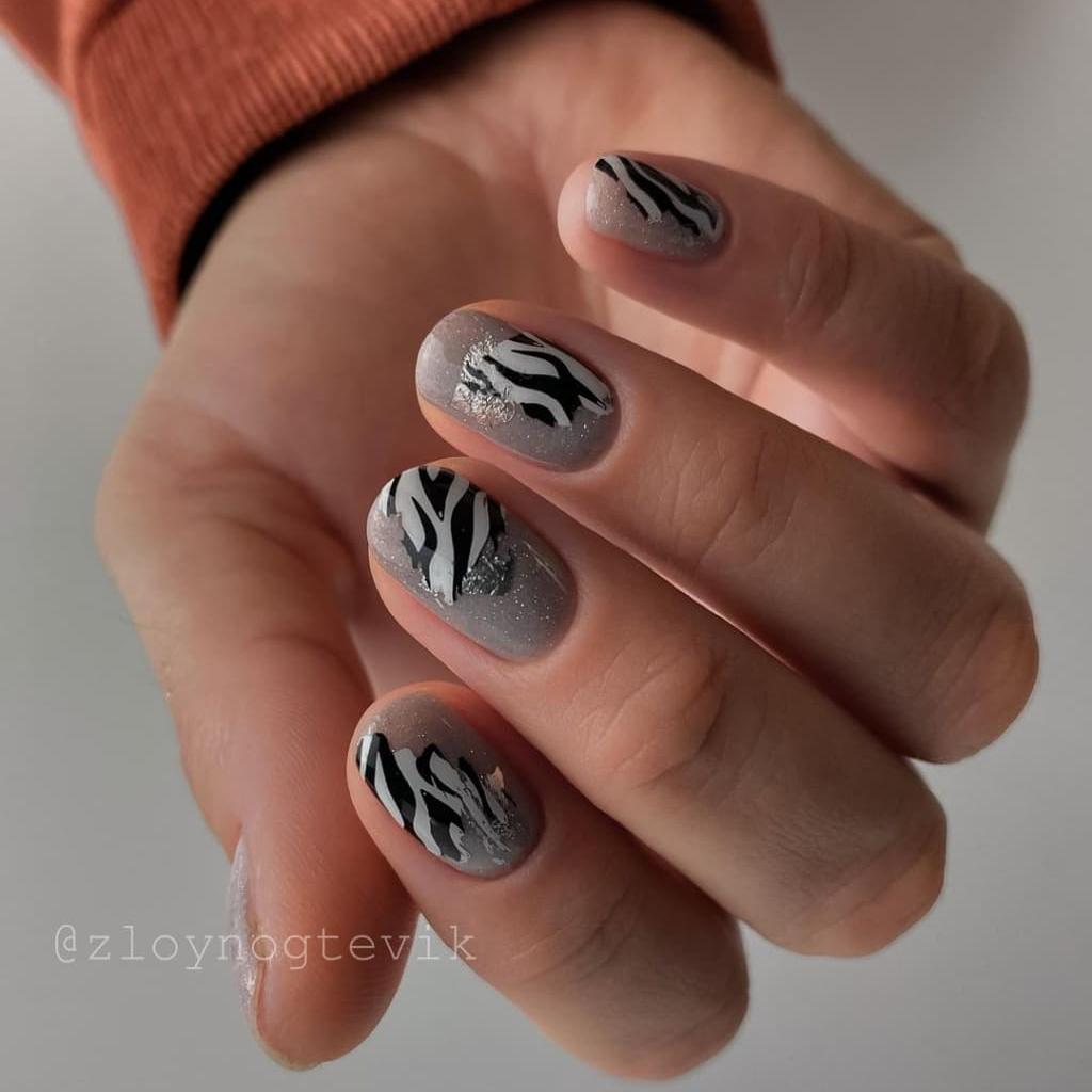 - размер принта: из-за ограниченной площади коротких ногтей, стоит выбирать мелкий принт зебры. Более крупные зебровые полосы могут занимать большую часть ногтя и выглядеть непропорционально;