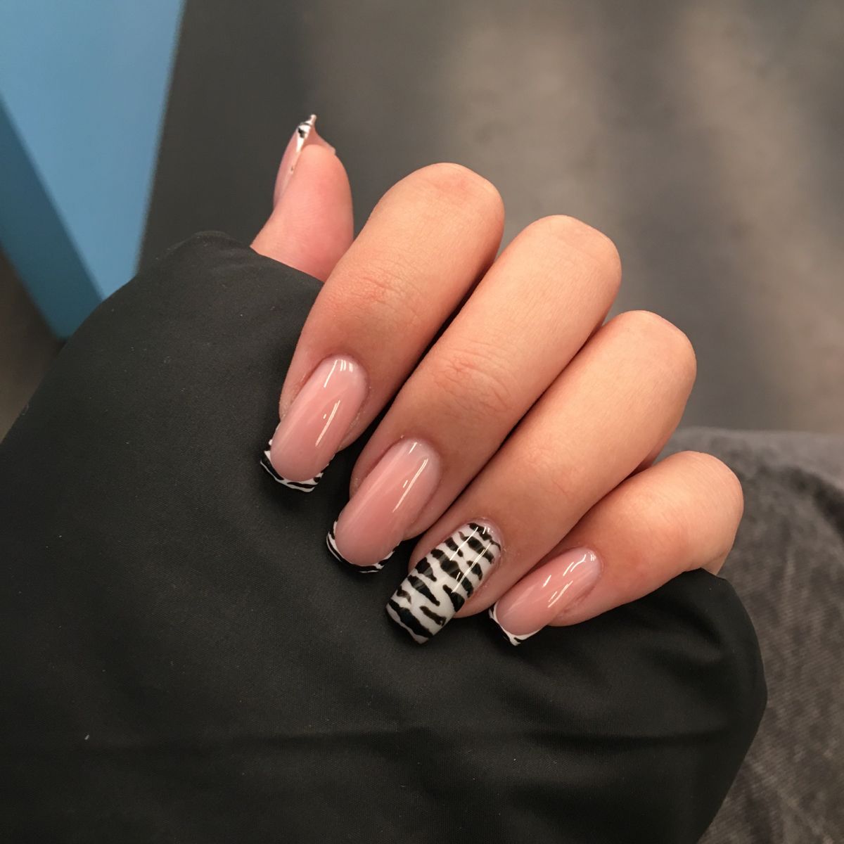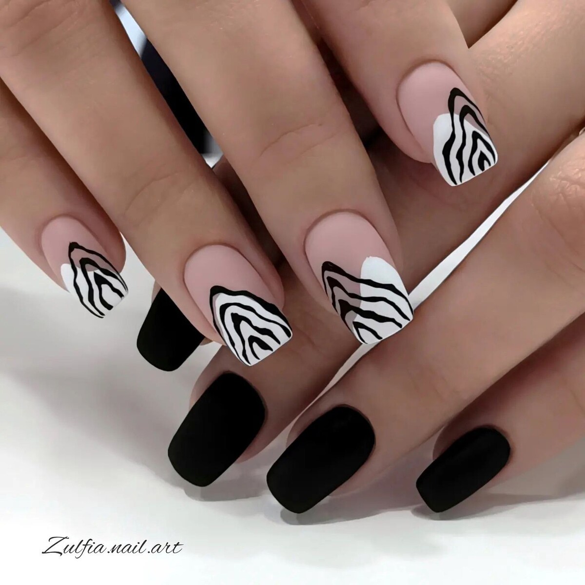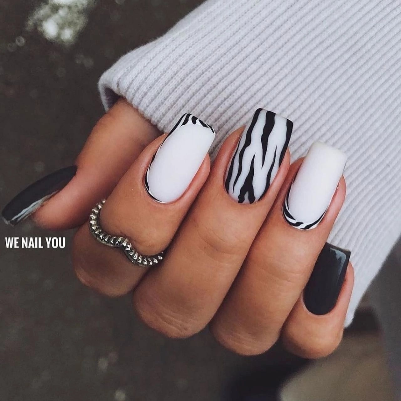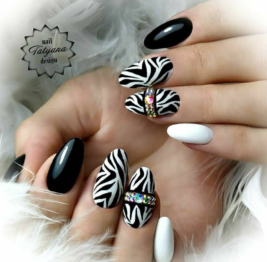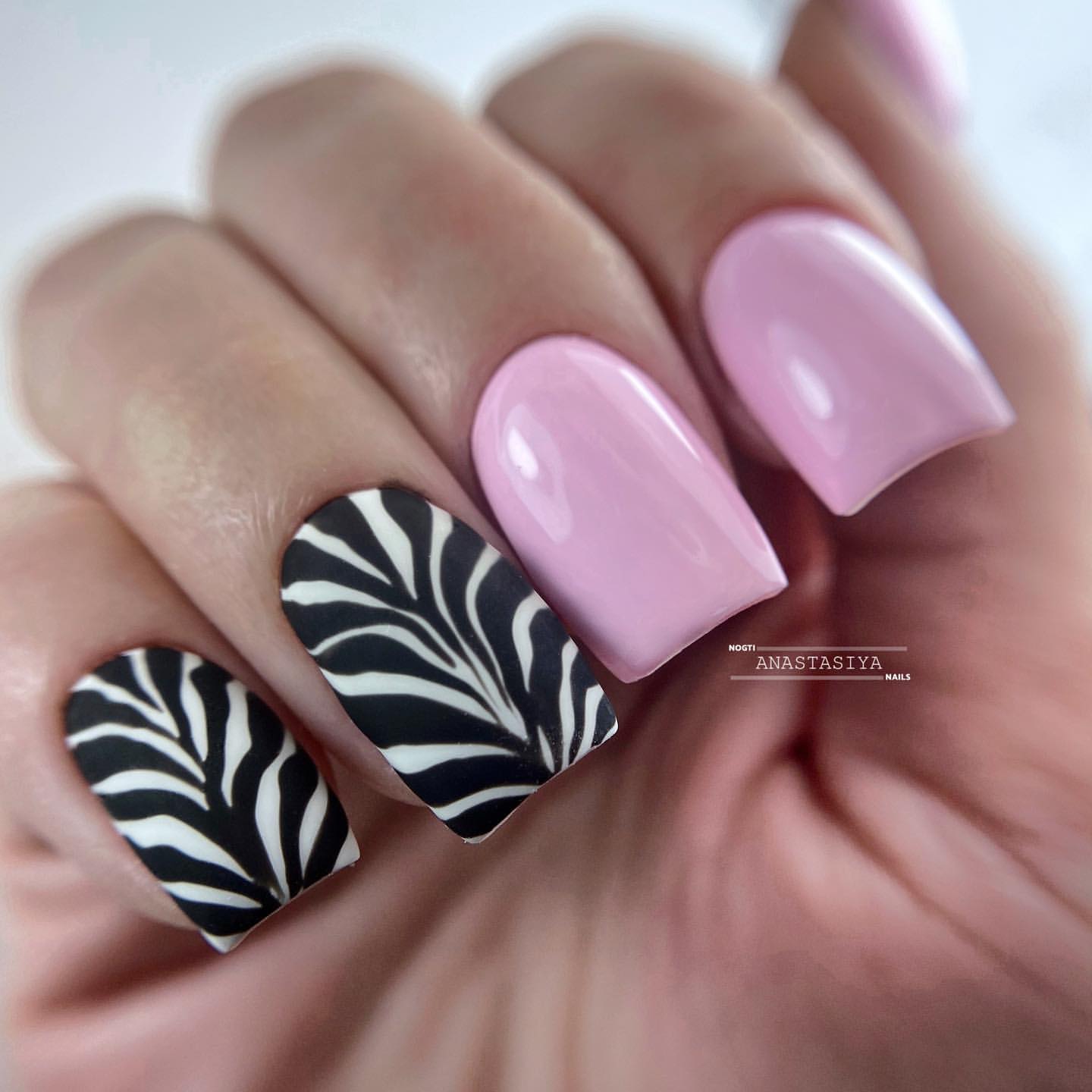 Маникюр с принтом зебры готов. Вы можете выбрать любые цветовые сочетания.