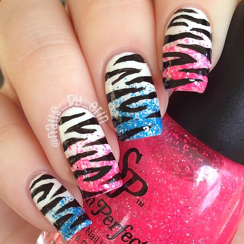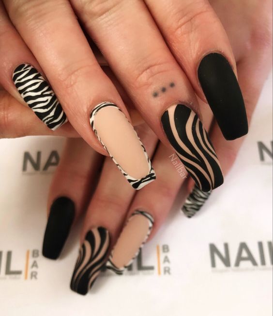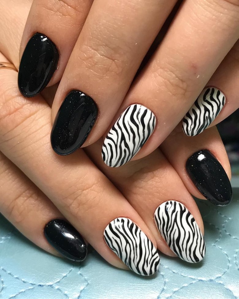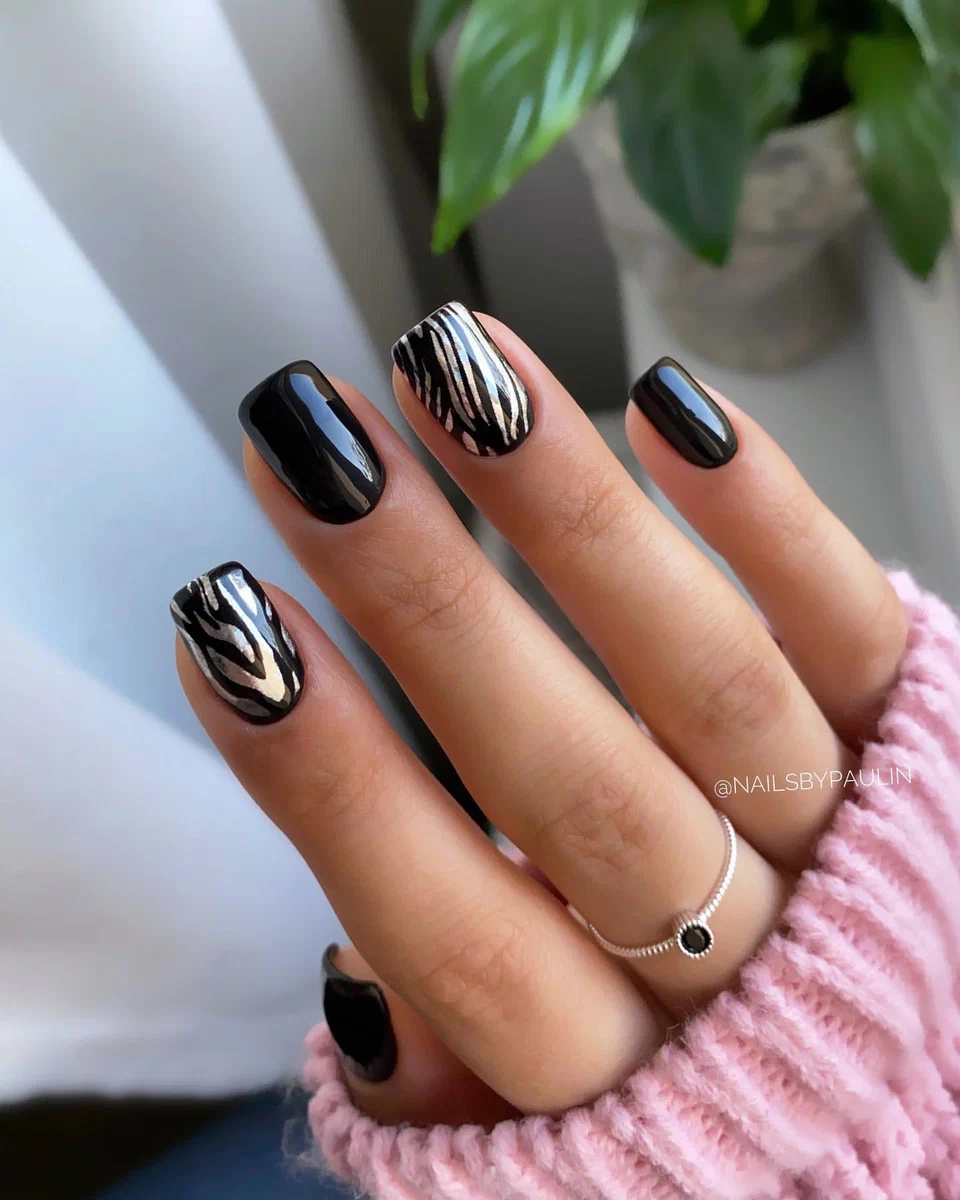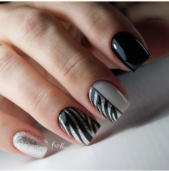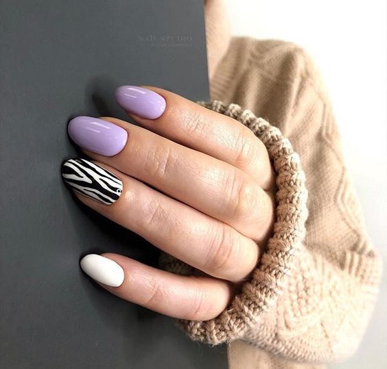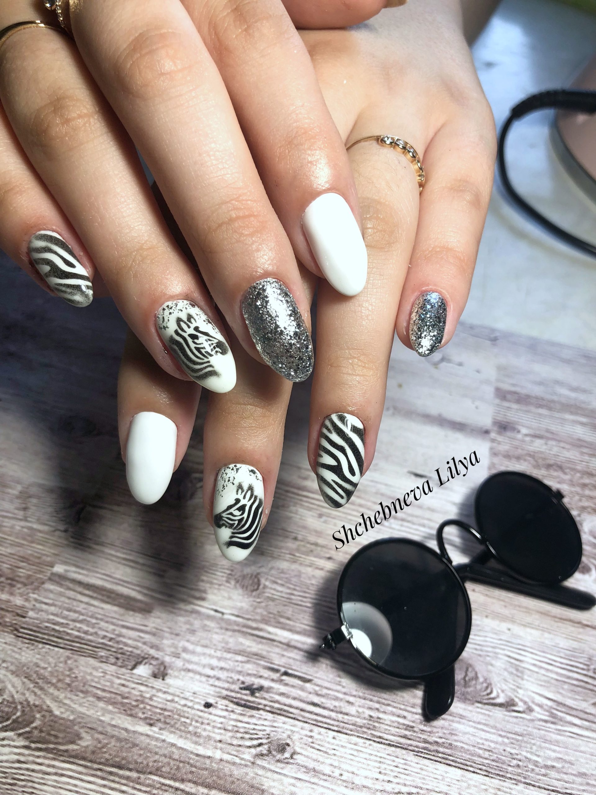 Маникюр с принтом зебры готов. Вы можете выбрать любые цветовые сочетания.