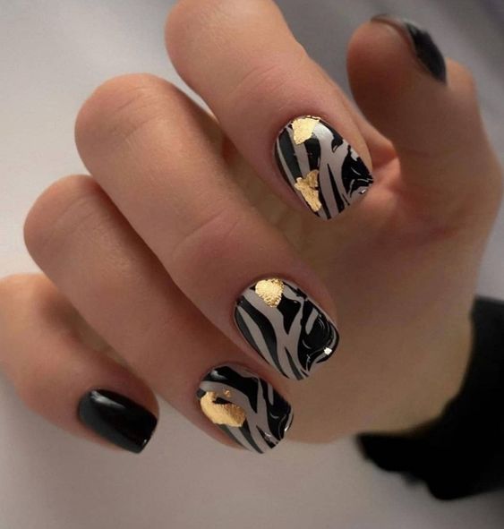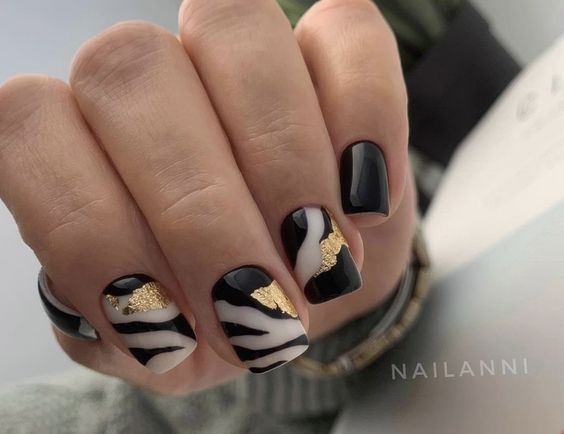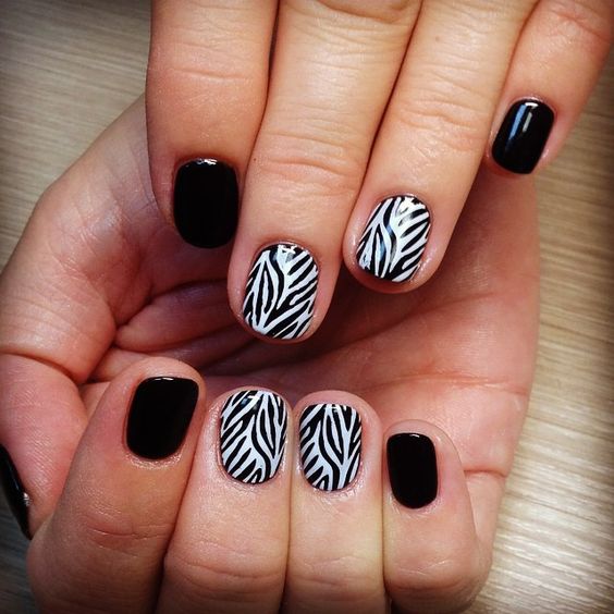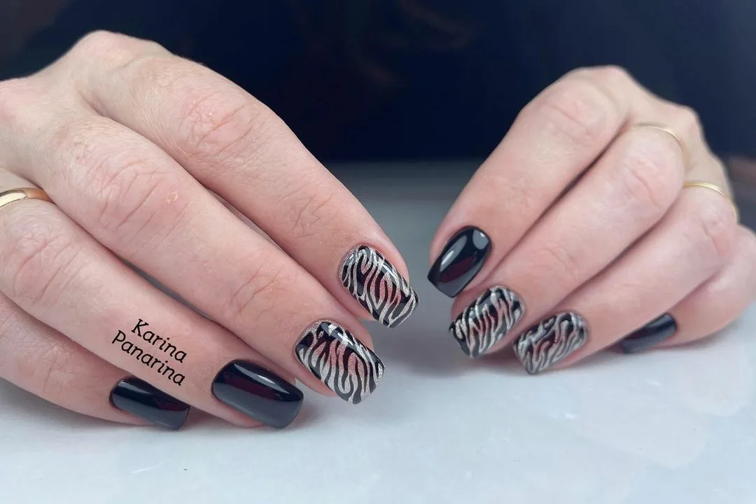 - контрастные цвета: черные и белые полосы являются ключевыми элементами маникюра зебра. Контраст между этими двумя цветами создает заметный и эффектный дизайн, привлекающий внимание;