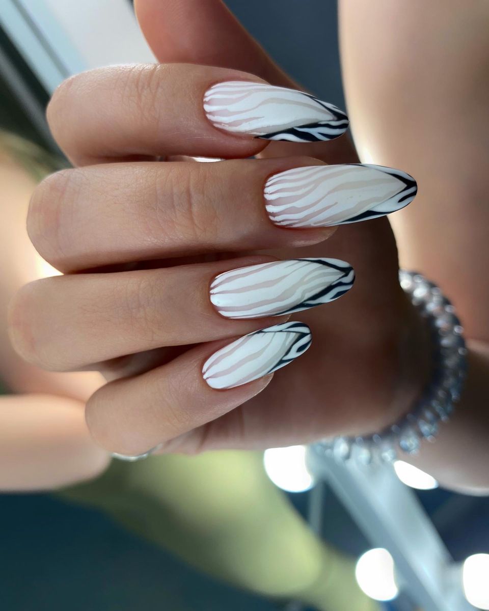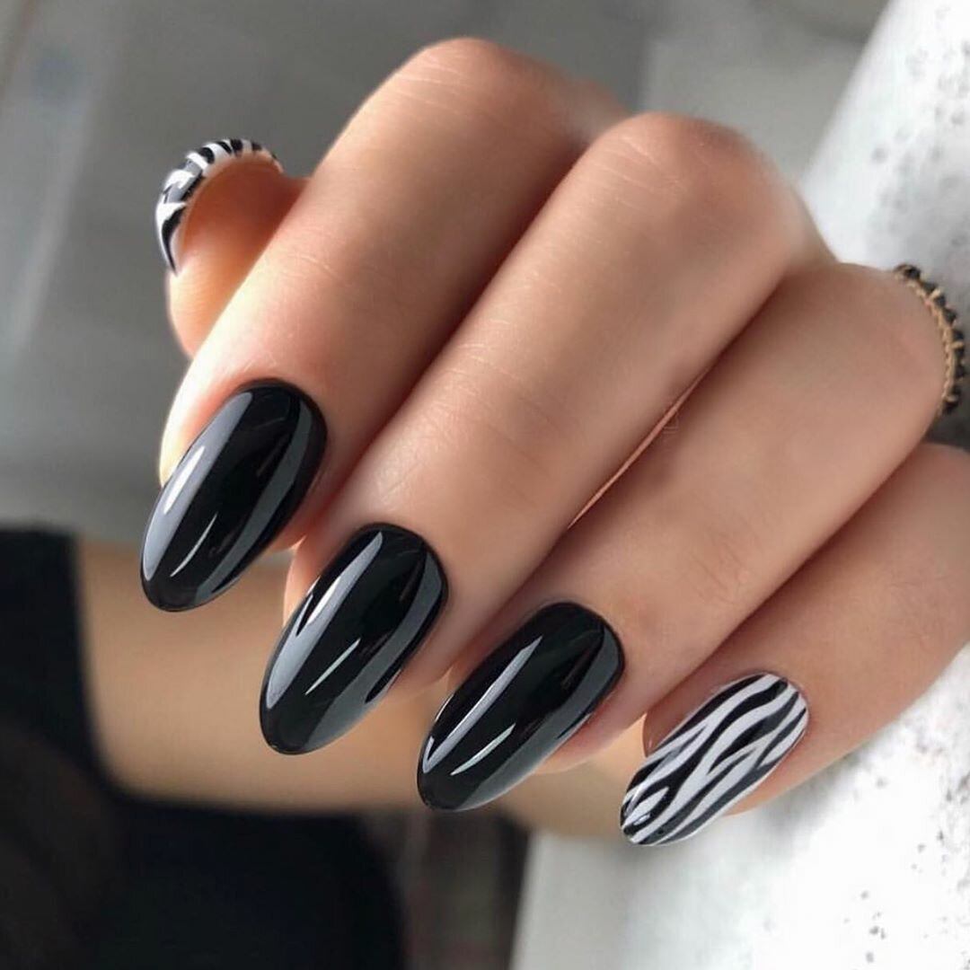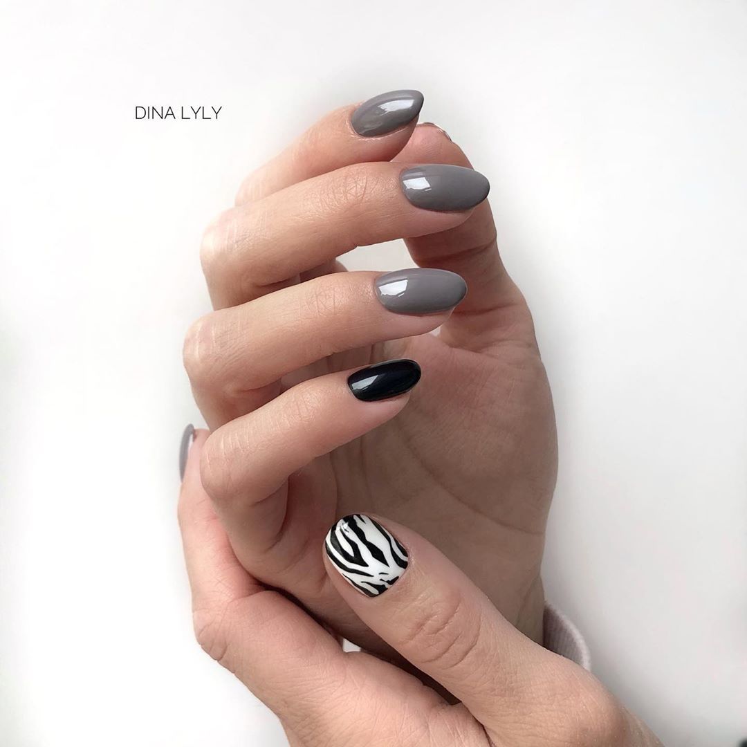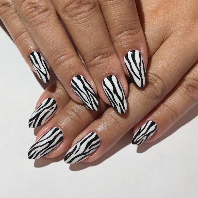 Какая длина ногтей актуальна в этом сезоне? Строгих правил нет, вы можете носить ту длину, которая вам нравится и удобна. А вот выбирать маникюр с зебровым принтом стоит продуманно и аккуратно, чтобы дизайн не выглядел чрезмерно или «не съедал» длину, делая пальчики короткими и некрасивыми.