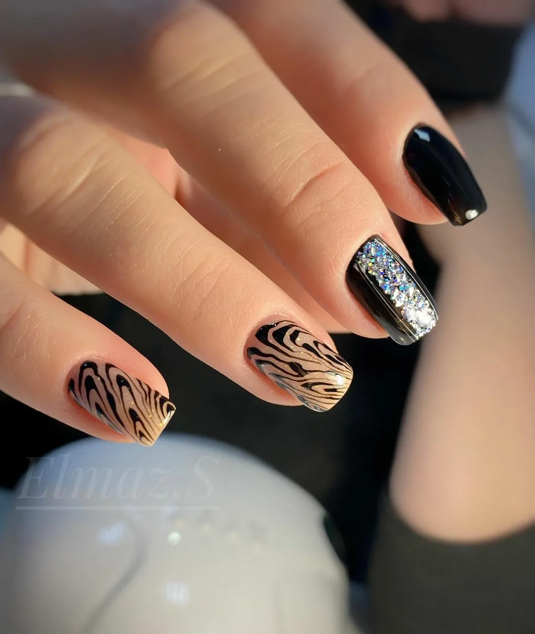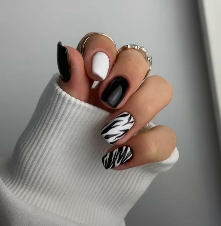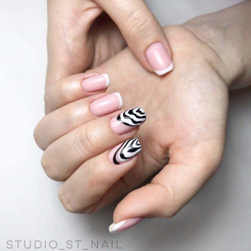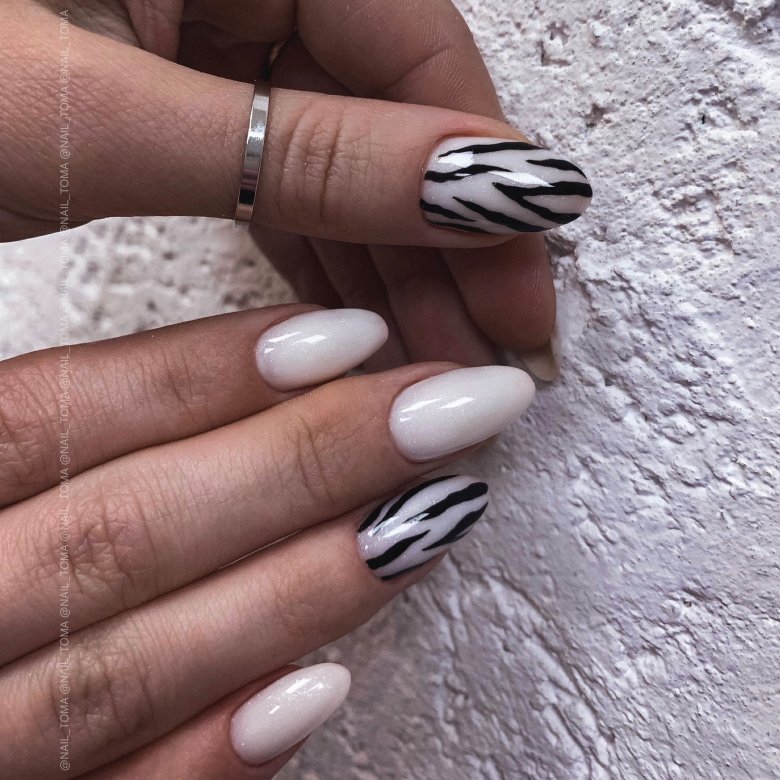 - варианты стилизации: маникюр зебра может быть выполнен в различных стилизациях, от простых и минималистичных полос до более сложных узоров, имитирующих текстуру шкуры зебры. Вы также можете добавить дополнительные детали, такие как блестки, стразы или наклейки, чтобы придать маникюру дополнительный эффект;