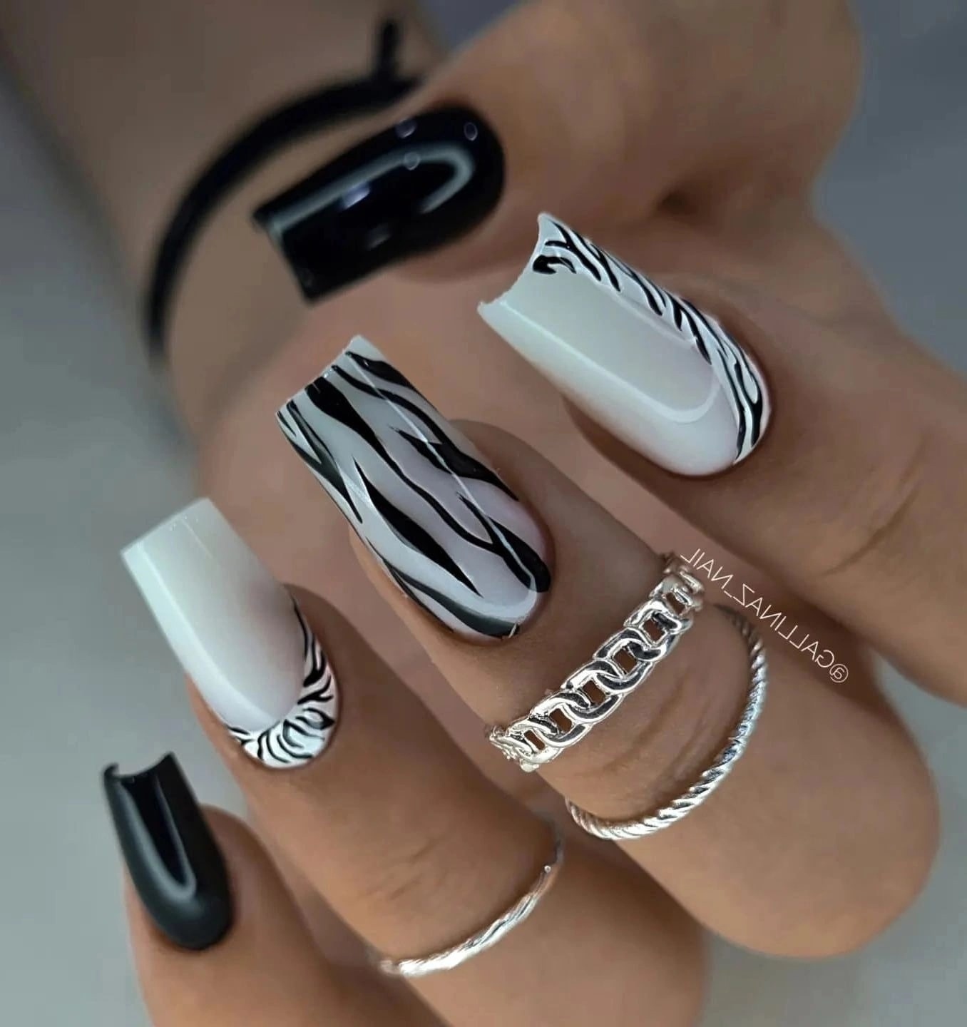 - универсальность: маникюр зебра подходит для любого возраста, стиля и события. Он может быть подходящим вариантом как для повседневного образа, так и для особых случаев. Этот дизайн привлекателен и в тренде.