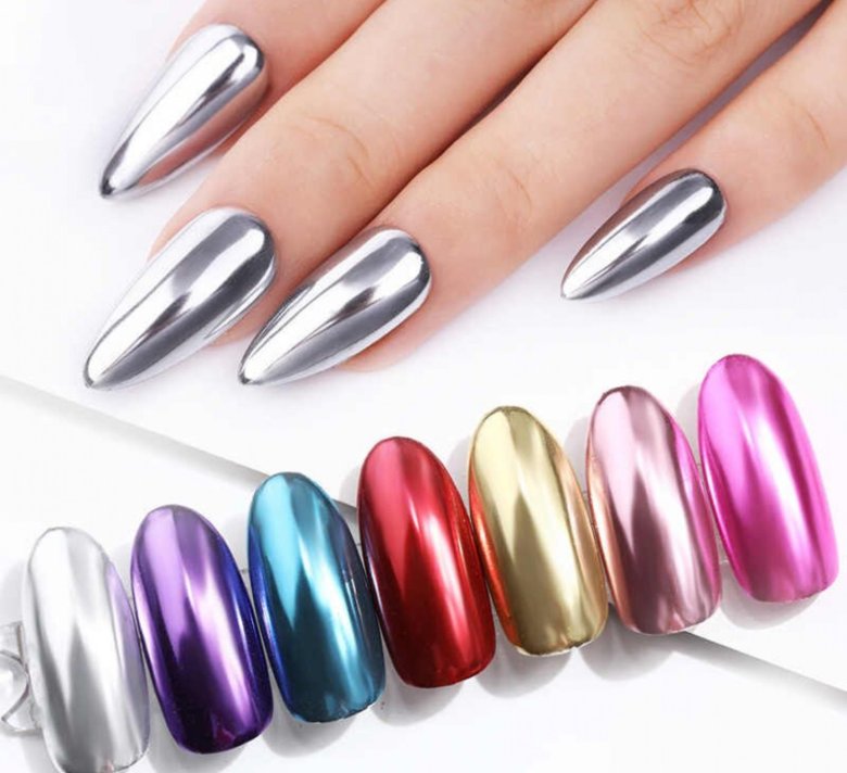 Мы уже отмечали, что зеркальный маникюр можно сделать разными способами, поэтому расскажем обо всех подробнее, чтобы вы смолги выбрать подходящий для вас вариант.