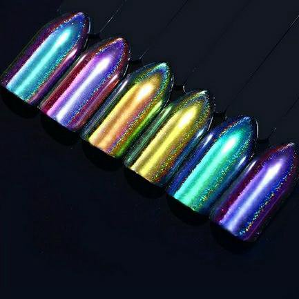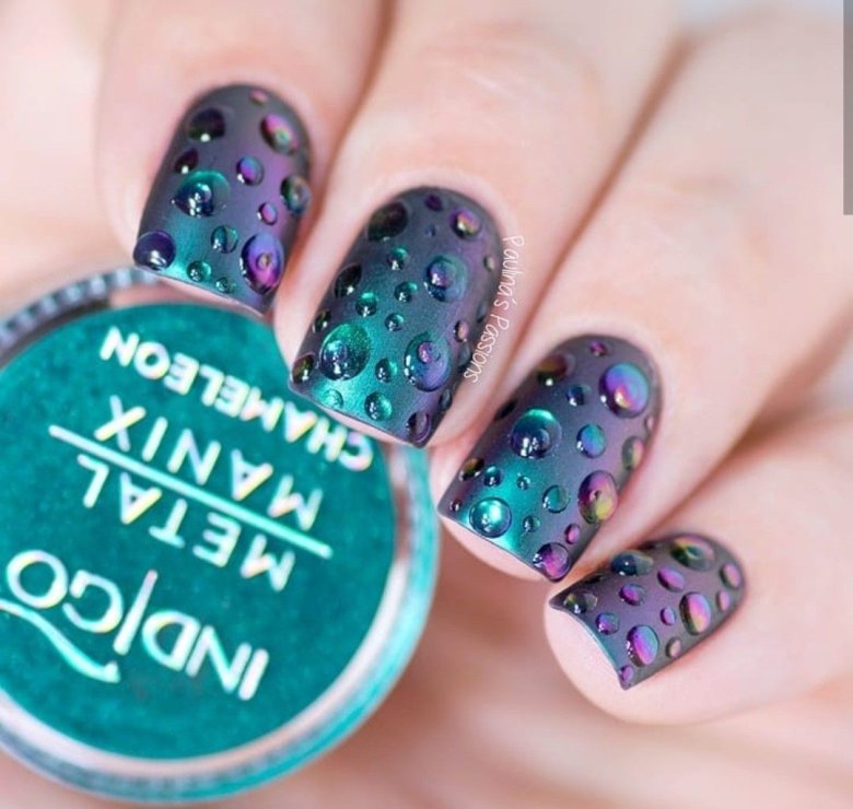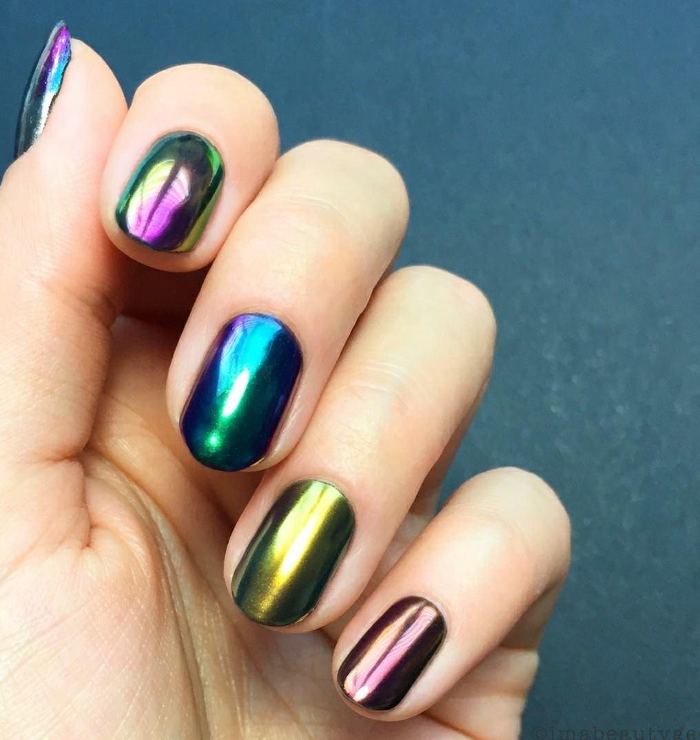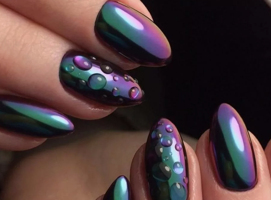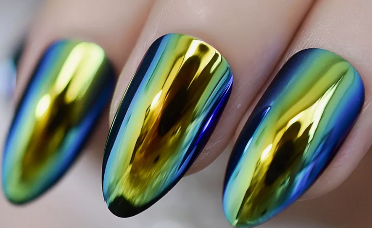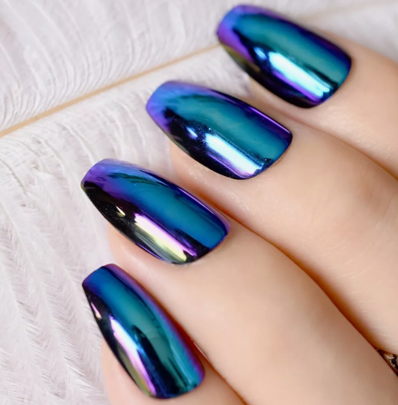 В этом и предстоящем сезоне большую популярность получили пигменты, известные как «хамелеоны». Эти специальные порошки наносятся на зеркальную поверхность и создают эффект двойного перелива, который меняет свой цвет в зависимости от угла обзора. На сегодняшний день на рынке представлен огромный ассортимент таких пигментов, каждый из которых отличается уникальным цветовым переливом.