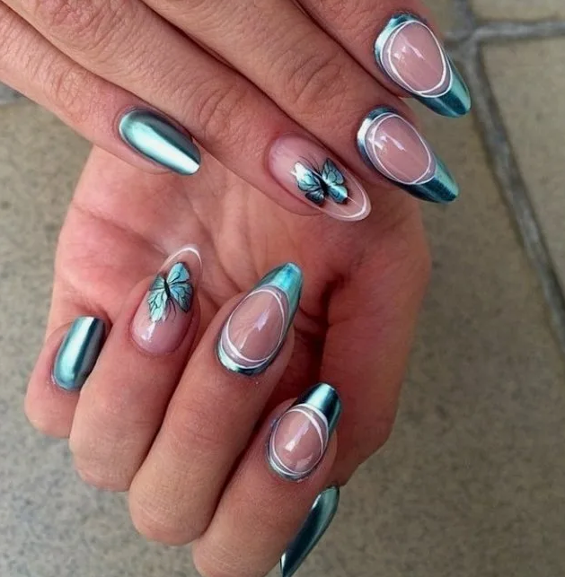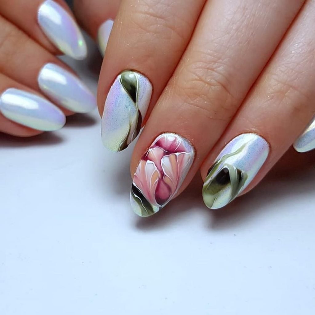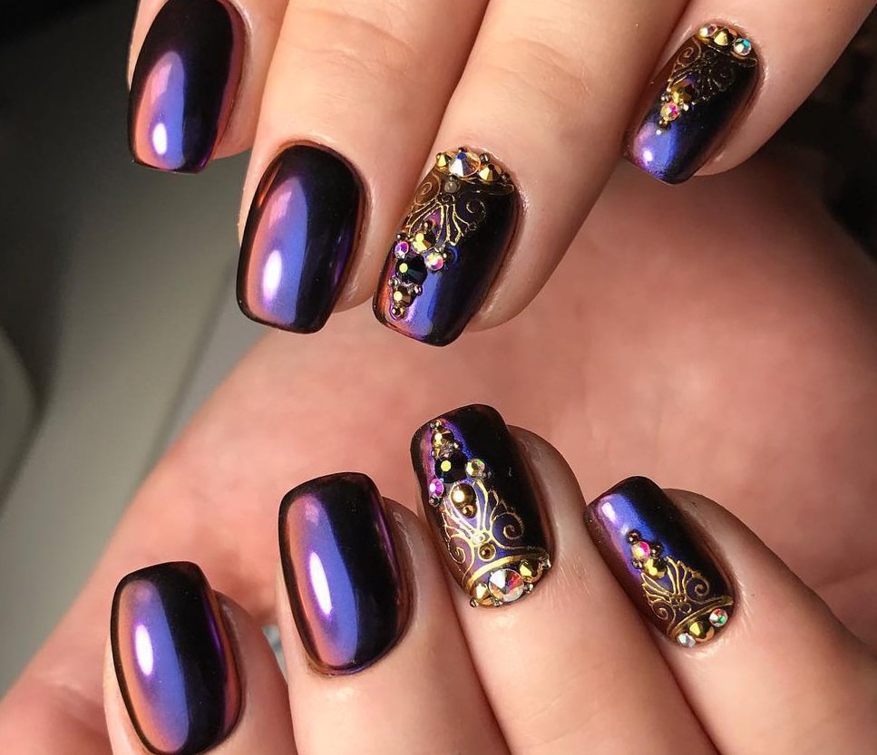 - Зеркальный маникюр с дизайном