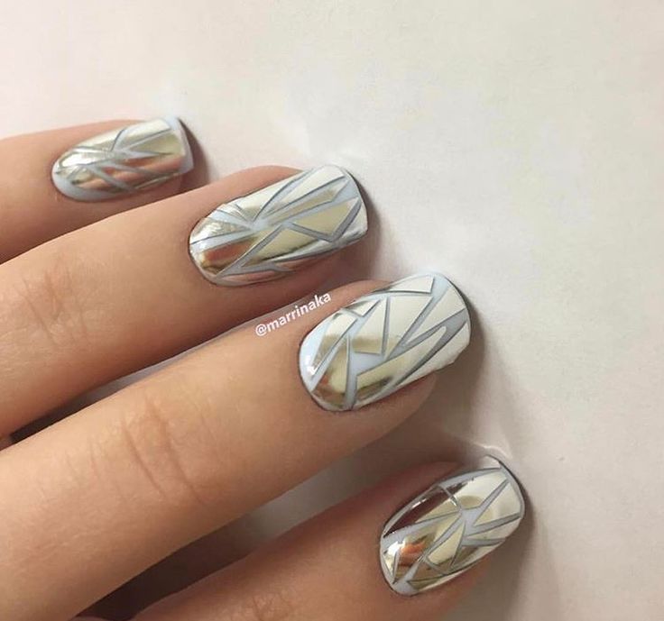 Зеркальный маникюр с дизайном