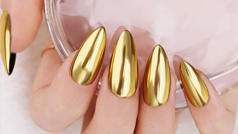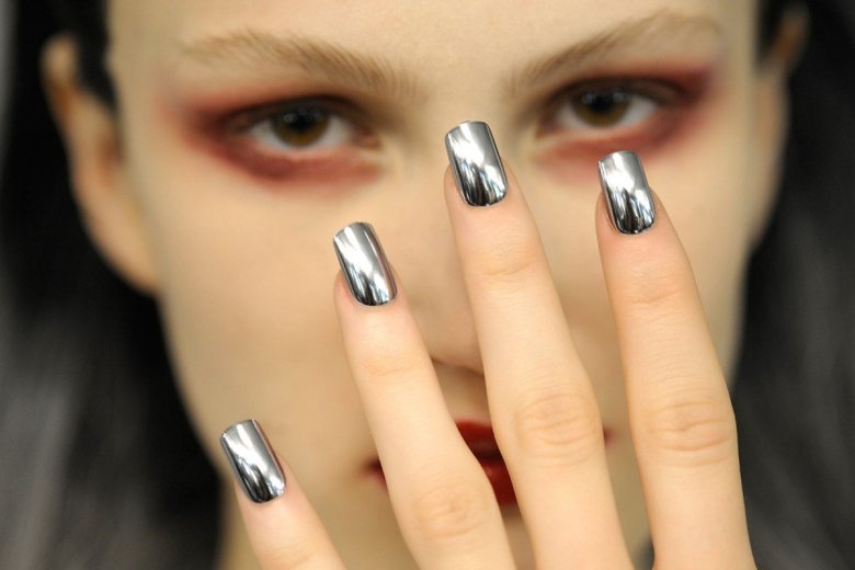 В мире нейл-арта зеркальное покрытие, создаваемое втиркой блестящей пудры, остается востребованным трендом. В сезоне осень-зима 2026 «хромированные» ногти стали выбором нейл-стилистов многих модных домов.