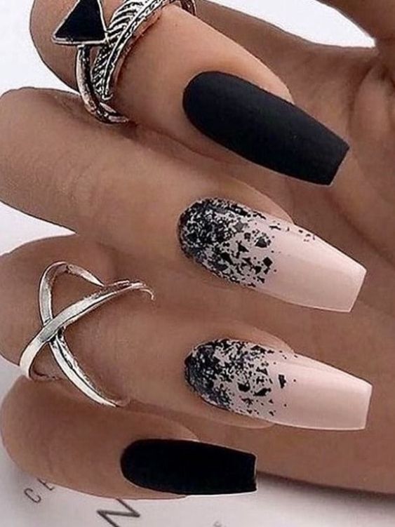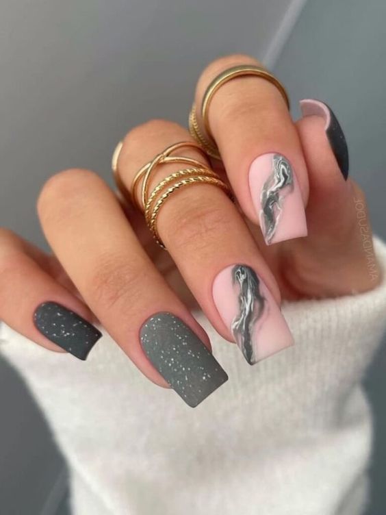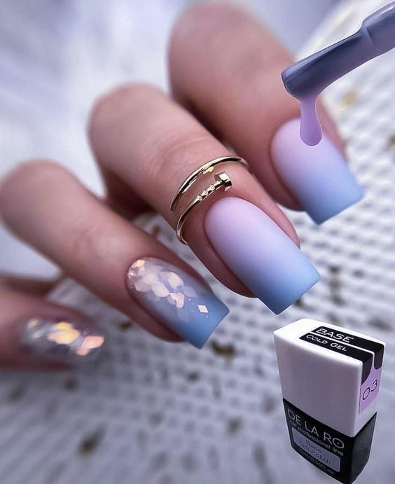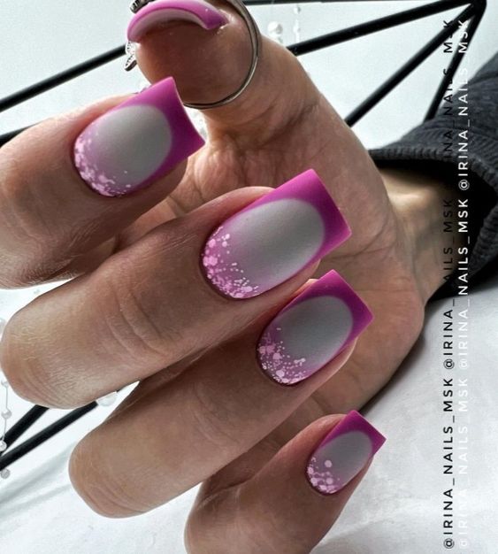 - матовый градиент: создайте плавный градиент цветов, переходящих из матового в глянцевый оттенок на одном или нескольких ногтях;