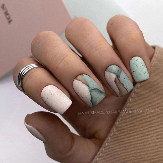 - матовый фреско-маникюр: имитируйте текстуру старинных фресок, нанося матовые оттенки и создавая абстрактные узоры;