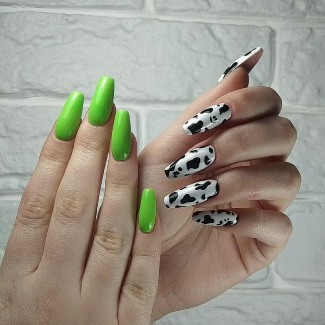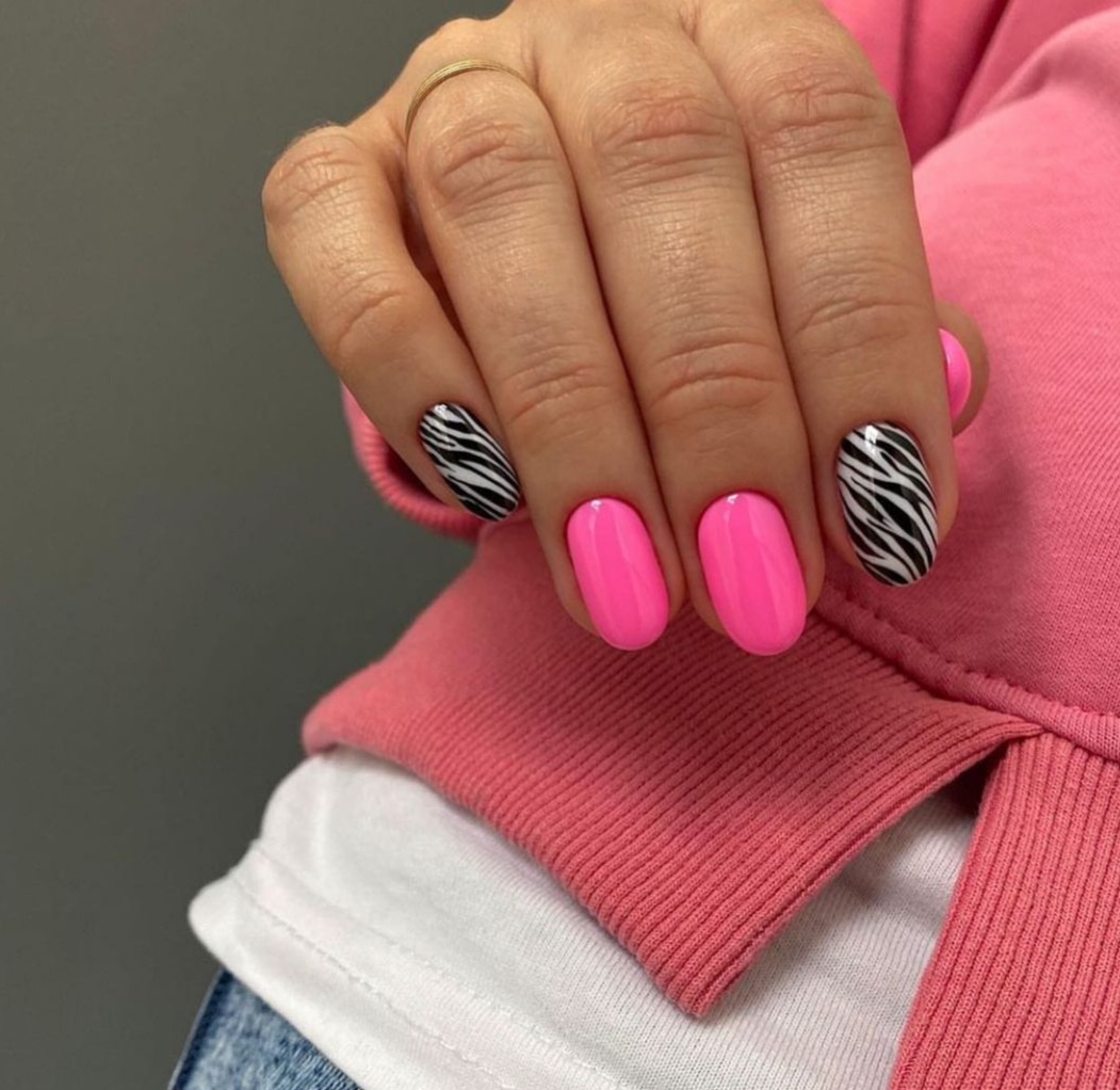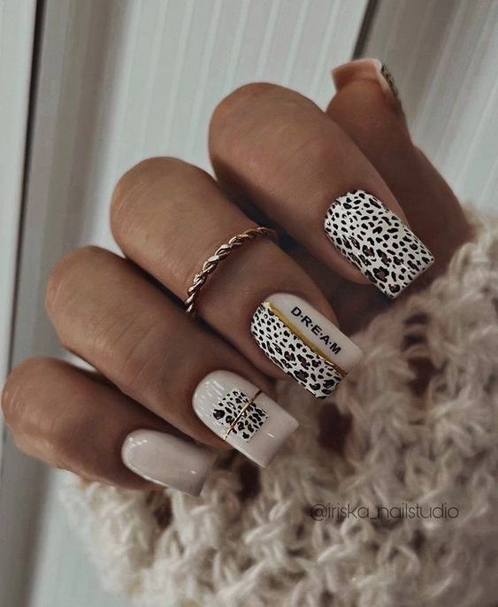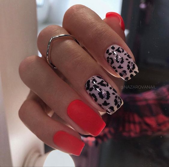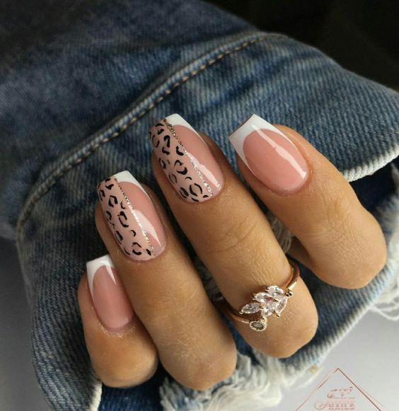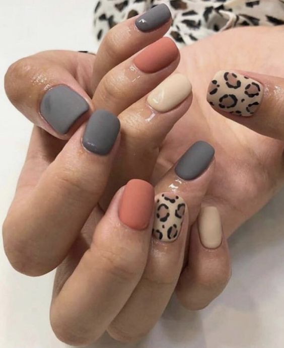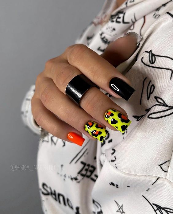 - леопардовый принт: создайте базовый цвет, например, бежевый или светло-желтый, и добавьте черные пятна в стиле леопарда. Этот дизайн отлично выглядит на акцент-ногтях;
