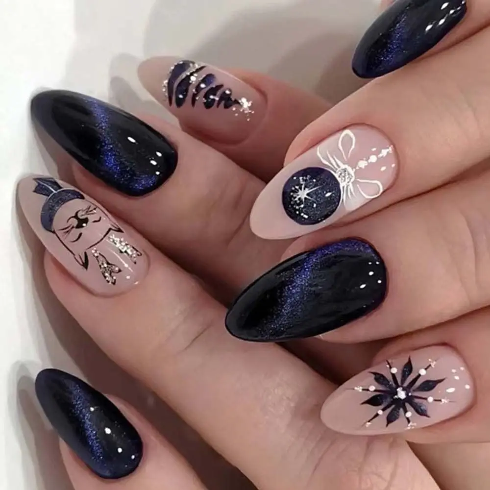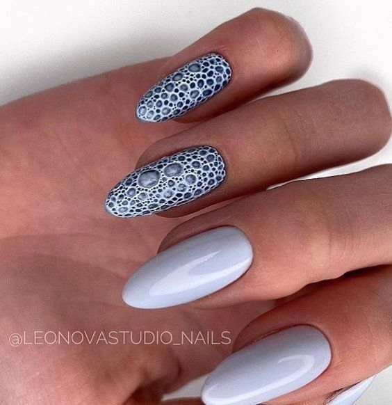 - игра с элементами: реализуйте идеи, которые связаны между руками, но выполняются по-разному. Например, на одной руке сделайте маникюр с изображением луны, а на другой – солнца;