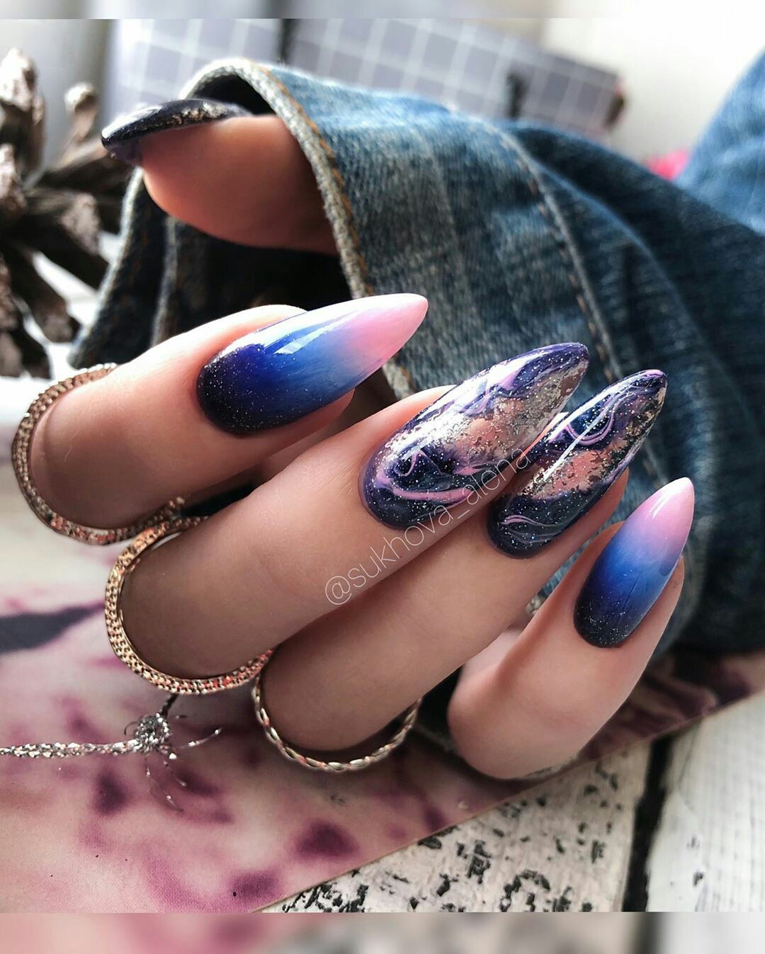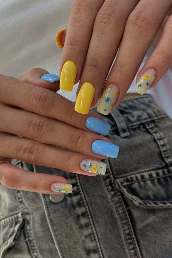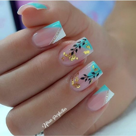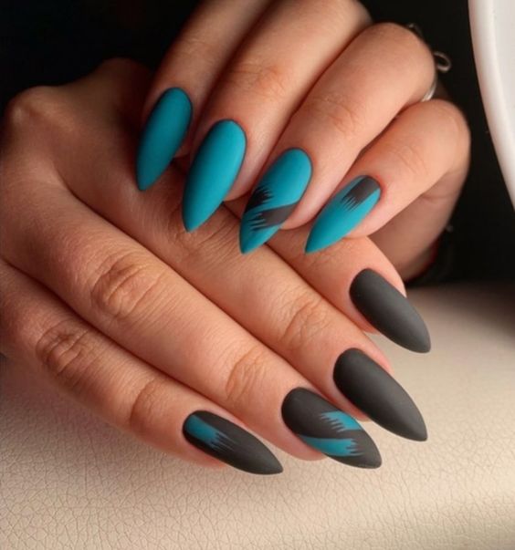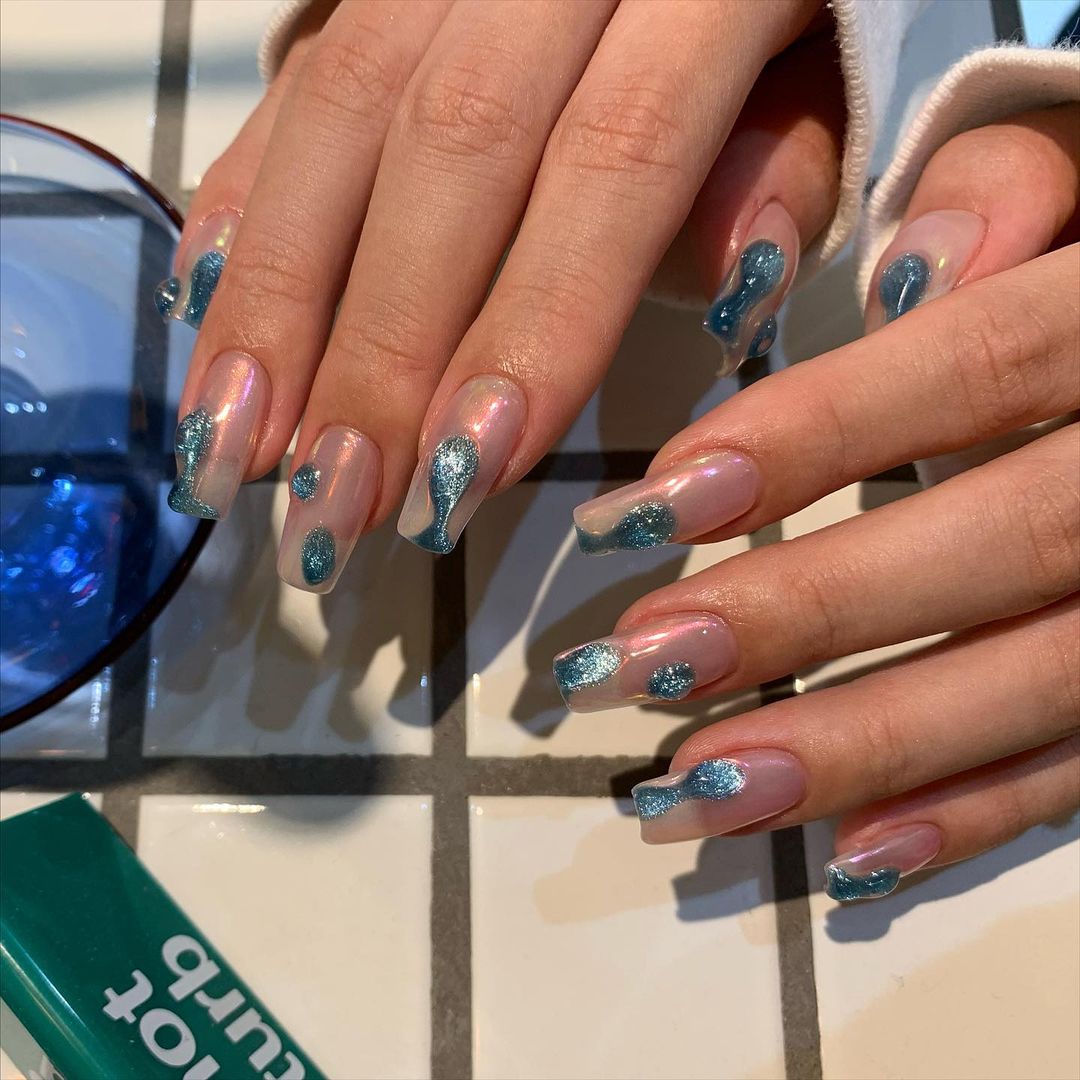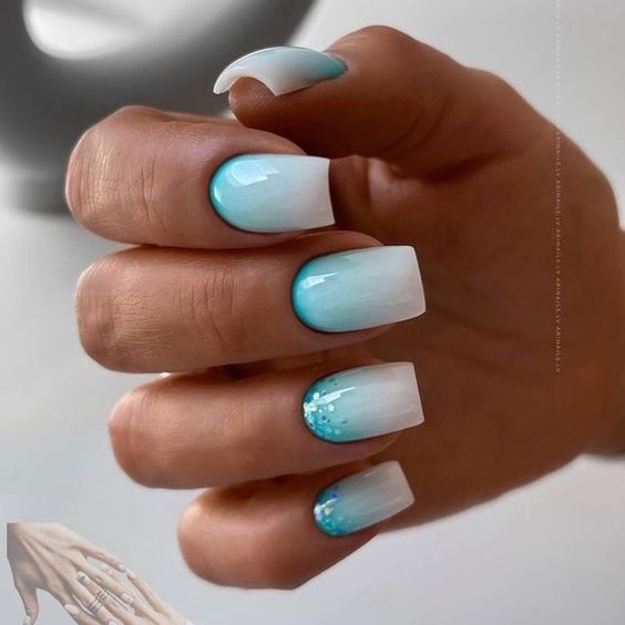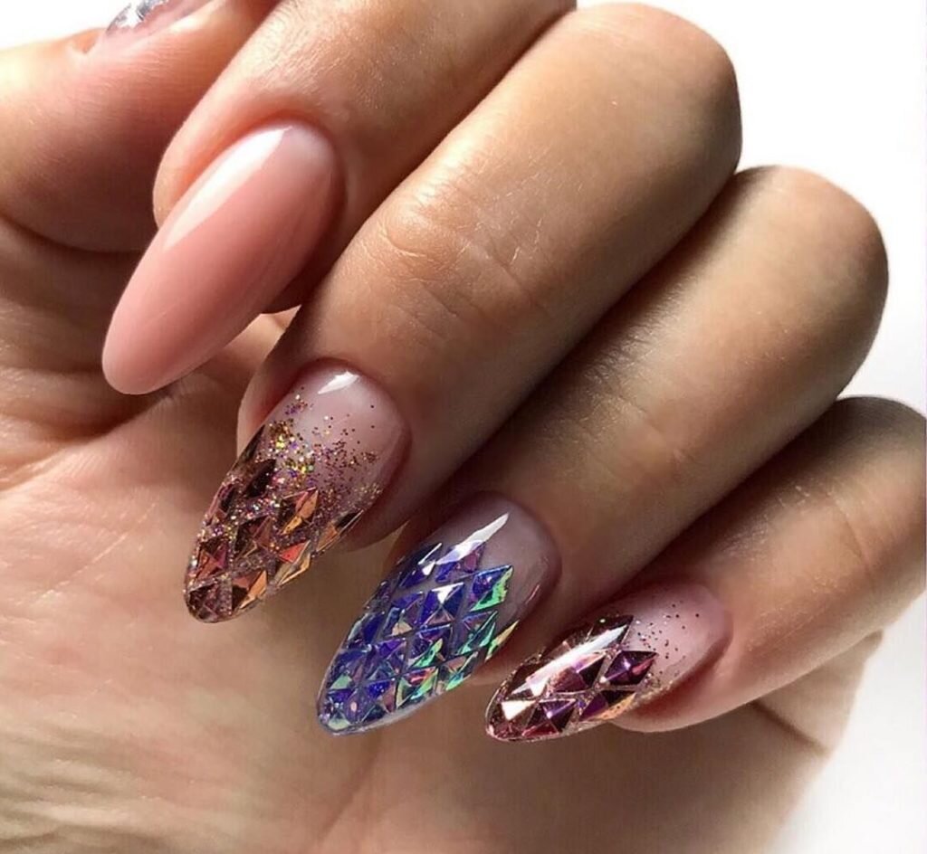 - цветовая гармония: используйте палитру из нескольких согласующихся цветов, но разные руки будут иметь немного разные оттенки. Например, на одной руке сделайте маникюр в голубых тонах, на другой – в синих;
