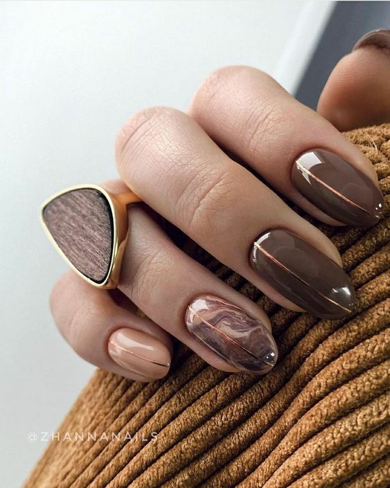 Коричневый цвет в маникюре — это универсальный и теплый оттенок, который прекрасно сочетается с различными стилями и цветами одежды. Коричневый маникюр может быть естественным и нежным, но также он может быть ярким и экзотичным, в зависимости от выбора оттенка и дизайна.