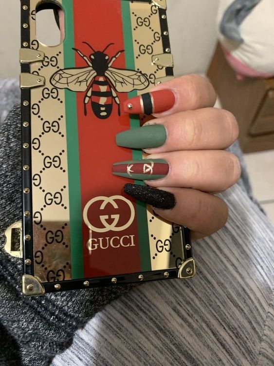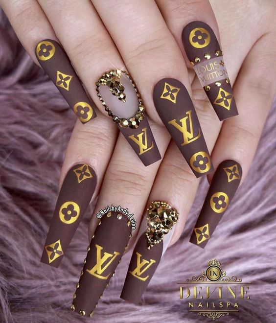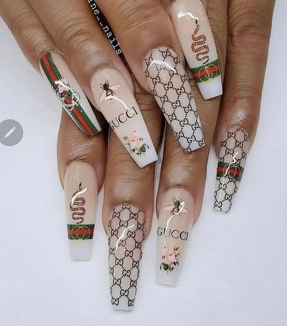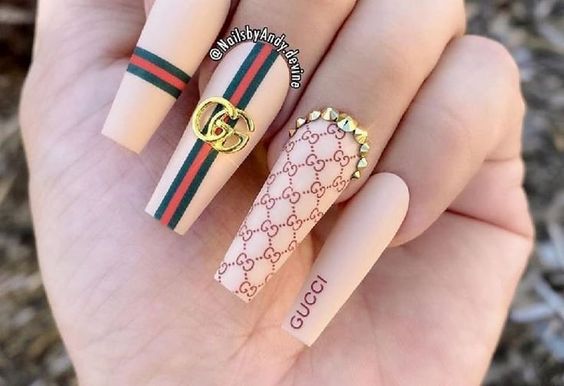 - логотипы брендов. Используйте миниатюрные логотипы популярных модных брендов в качестве акцентов на ногтях. Это может быть знаковый логотип Gucci, Chanel, Louis Vuitton и т.д.;