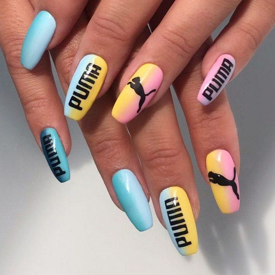 - комбинированные логотипы. Создайте уникальный дизайн, комбинируя элементы разных логотипов в одном маникюре;
