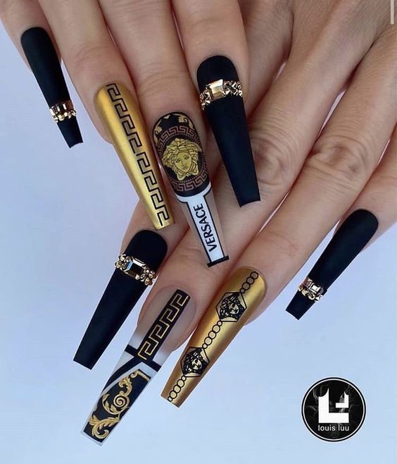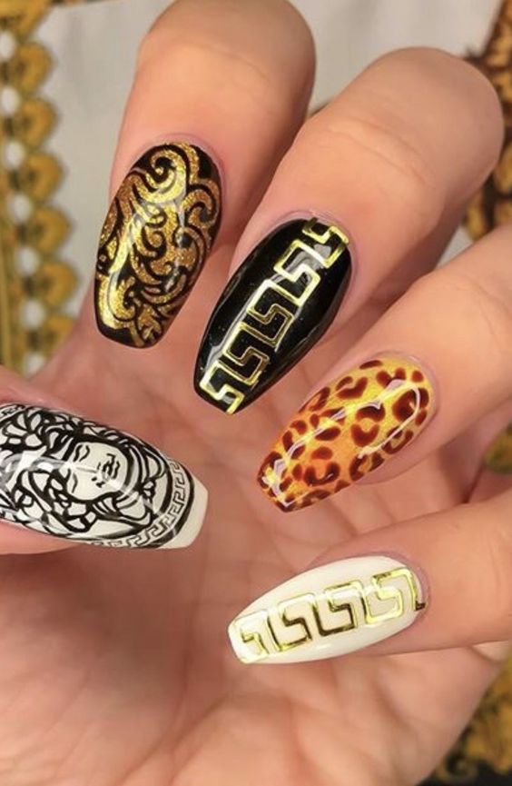 - символы и иконки. Воплотите на ногтях узнаваемые символы брендов, такие как Medusa Versace, двойная С Chanel или символ Apple;