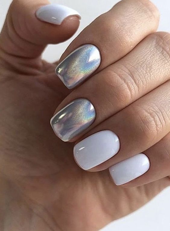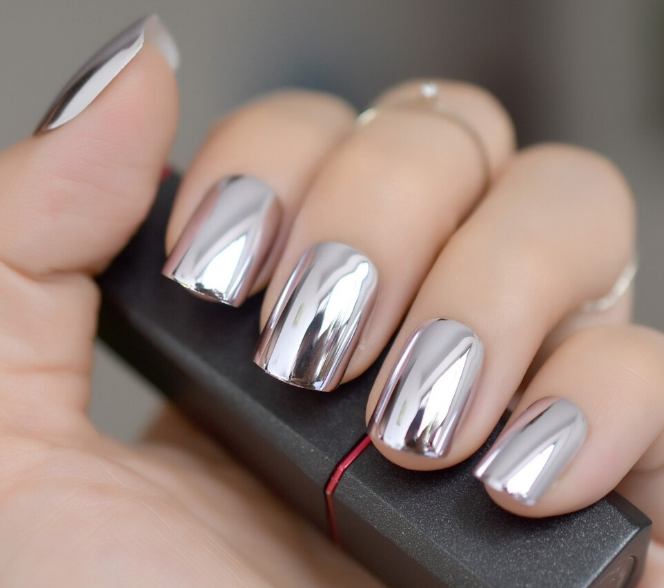 - однотонный металлик: нанесите однотонный металлический лак на все ногти. Это создаст сияющий и элегантный вид;