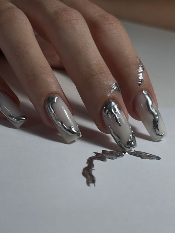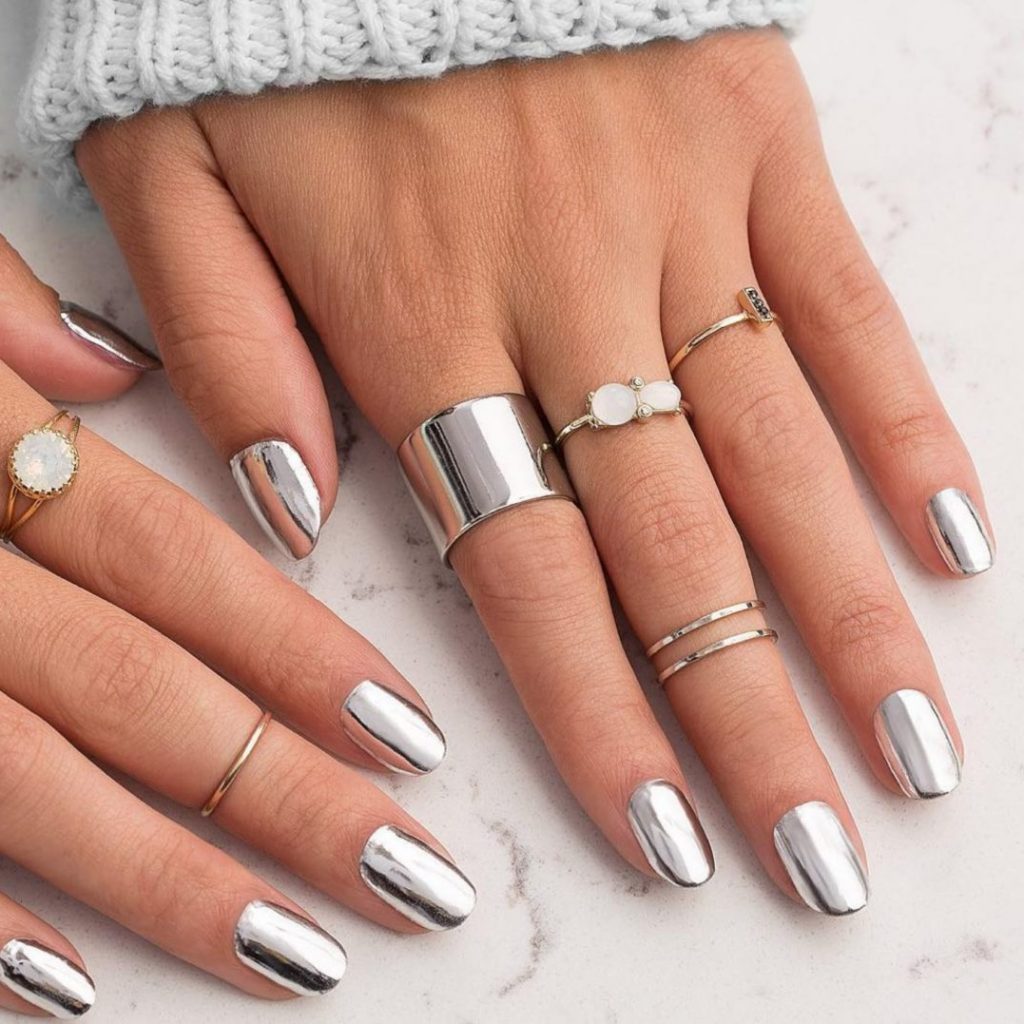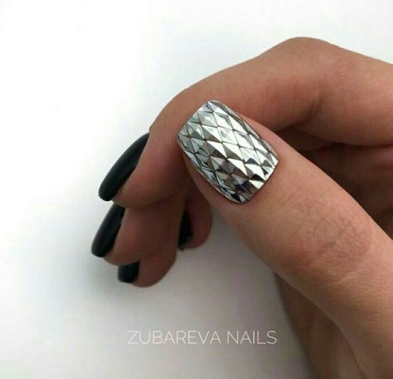 Модный маникюр с металлическим покрытием создает яркий и современный стиль. Он универсален и смел, подходит любому образу и событию. Интересные идеи: