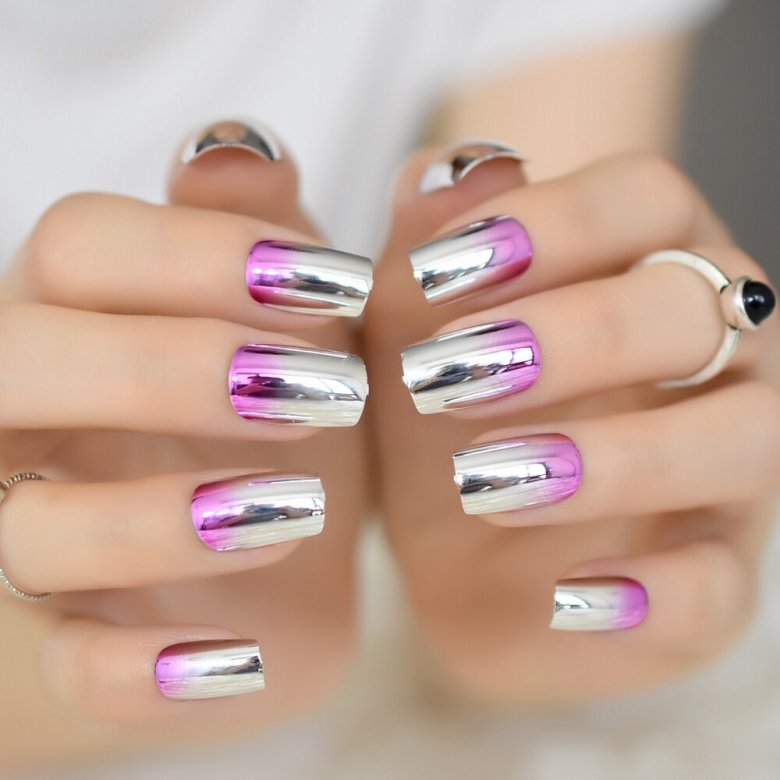 - металлический омбре: создайте омбре эффект, переходящий от одного металлического оттенка к другому на разных ногтях;