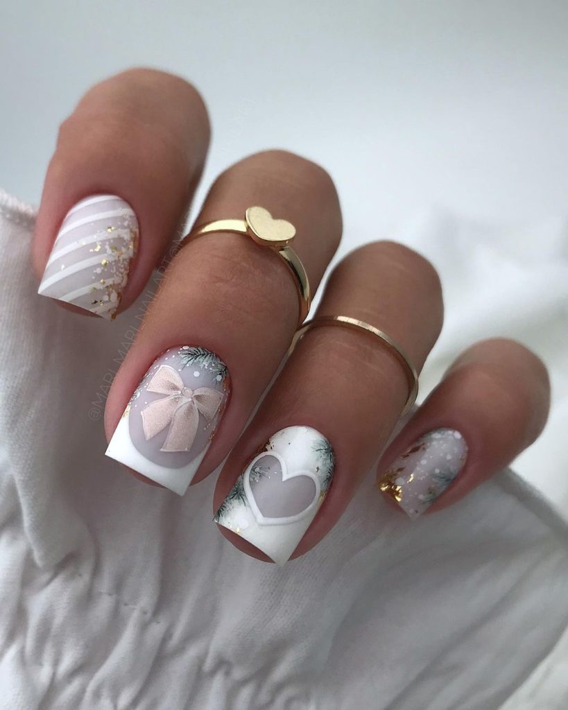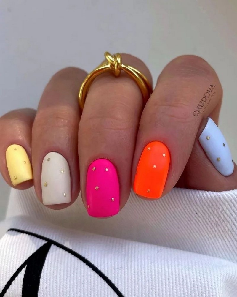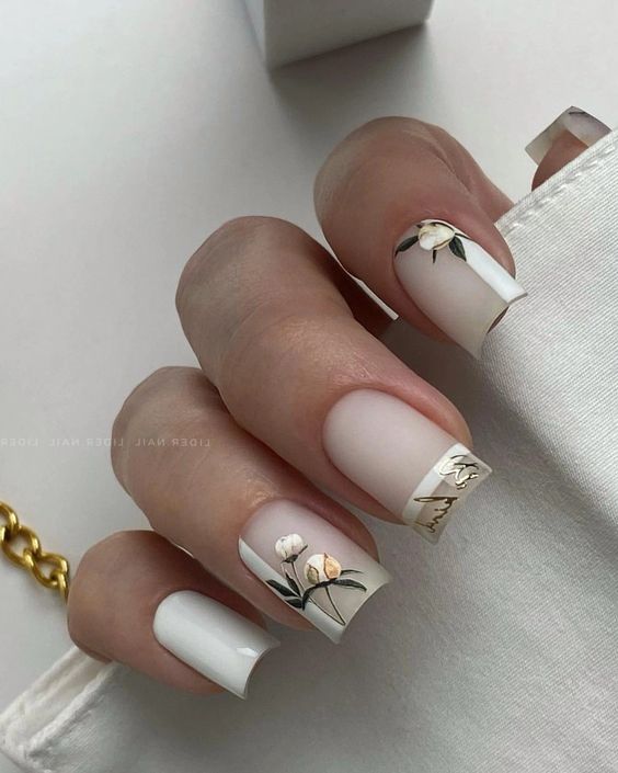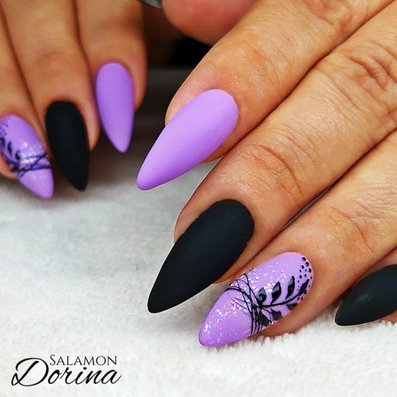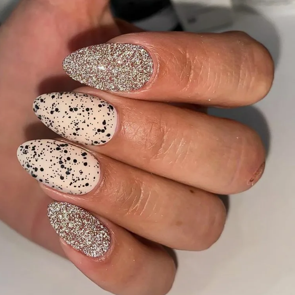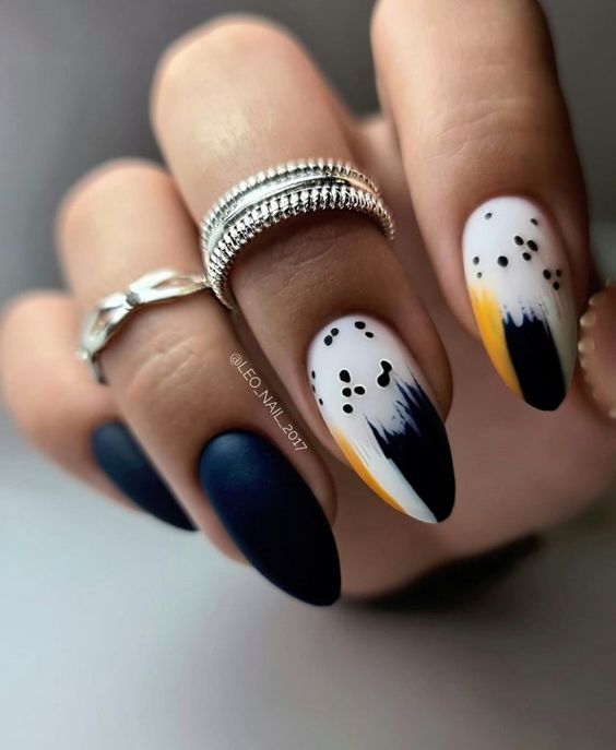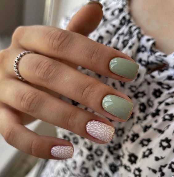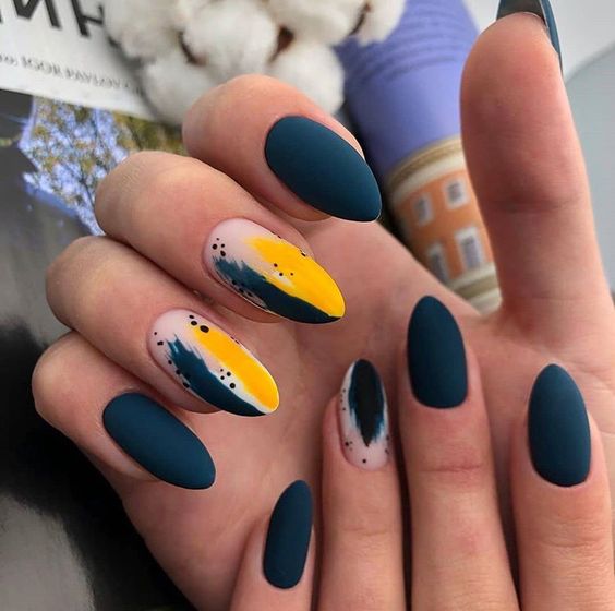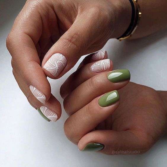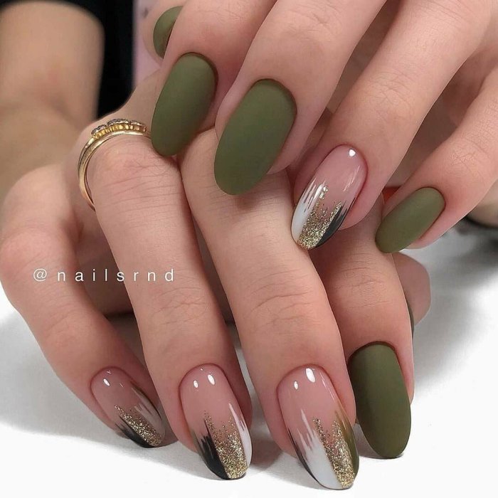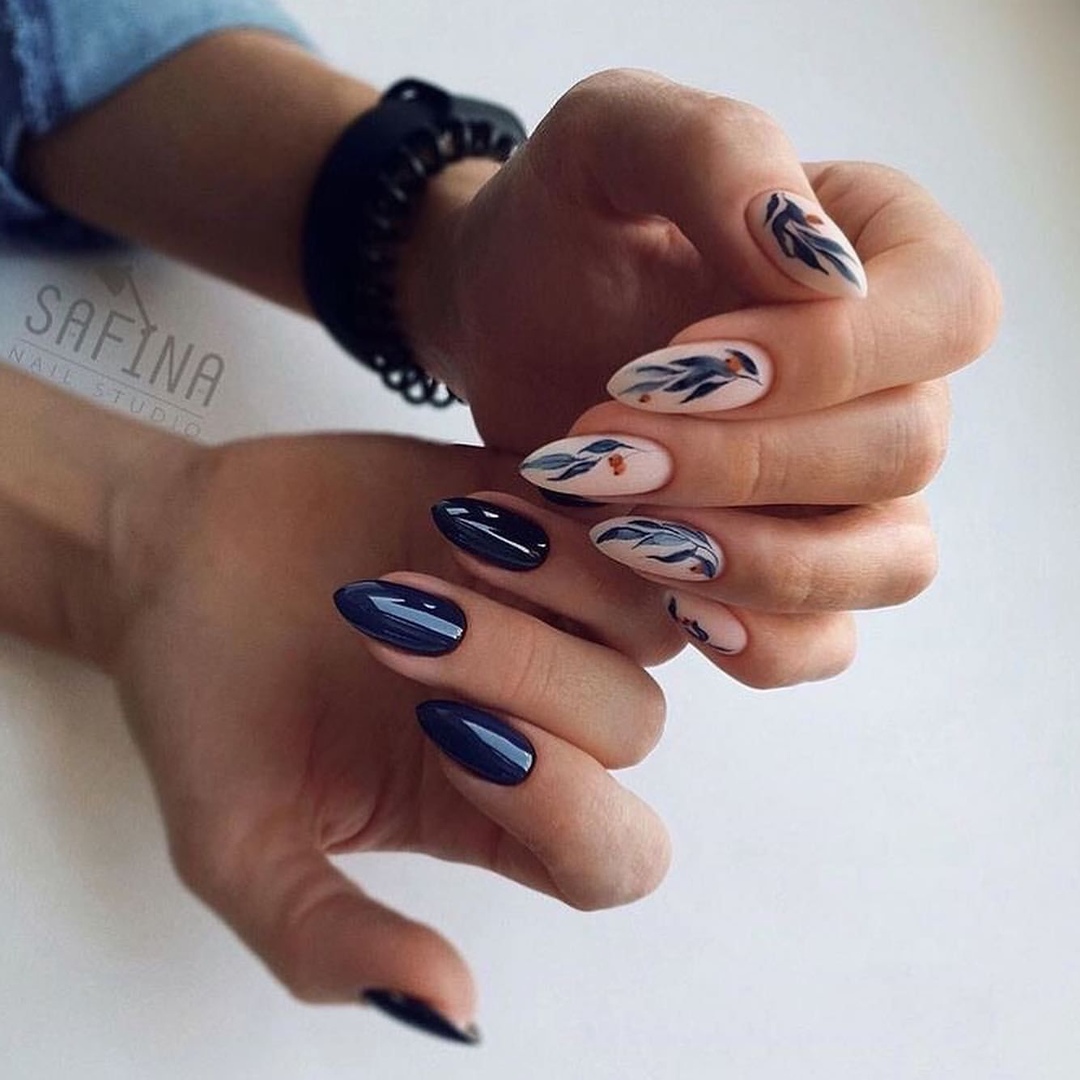 - матовый фон с глянцевыми деталями: создайте маникюр с матовым фоном и добавьте небольшие глянцевые детали, такие как точки, стрелки или капельки.