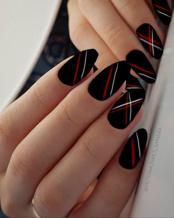 - металлические узоры: добавьте геометрические узоры, полосы или точки с использованием металлического лака;
