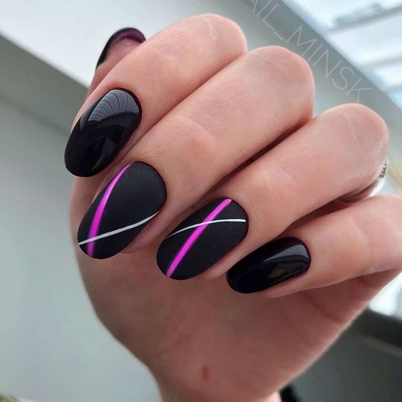 - матовый и глянцевый контраст: создайте игру контрастов, используя глянцевую и матовую текстуры на разных ногтях или на одном ногте;