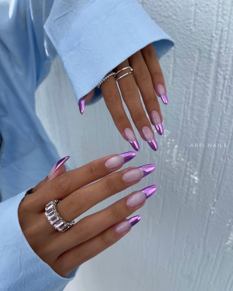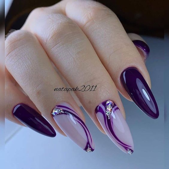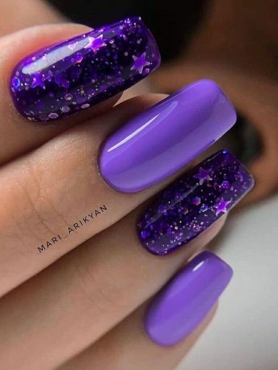 Фиолетовый цвет в маникюре — это элегантный и женственный оттенок, который позволяет создавать множество различных образов. Он может быть нежным и романтическим, а также экзотичным или классическим, в зависимости от выбранного оттенка и дизайна.