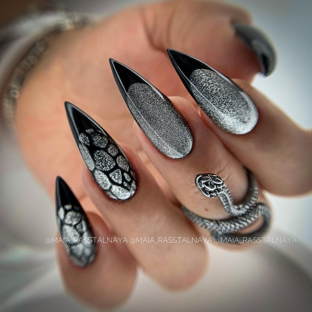 Черный — это смелый и модный выбор, который дает возможность создать экстравагантный и элегантный образ. Черный маникюр может быть как классическим, так и крайне оригинальным, что делает его популярным среди представительниц разных стилей и возрастов.