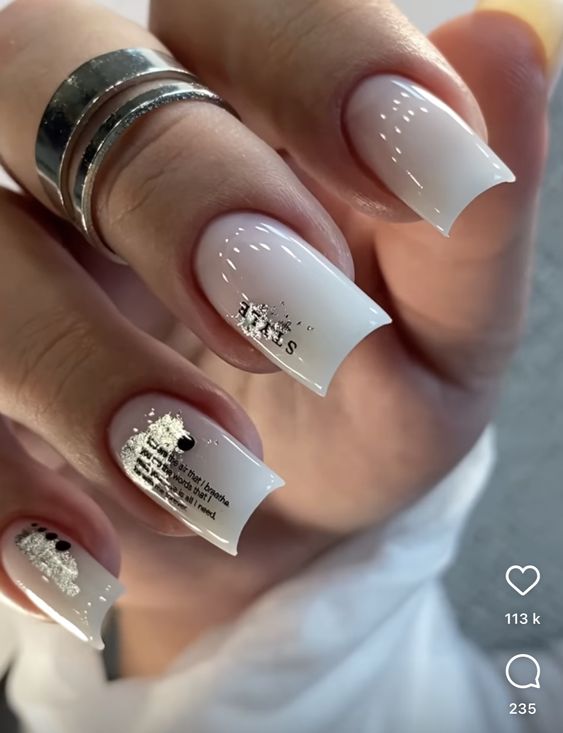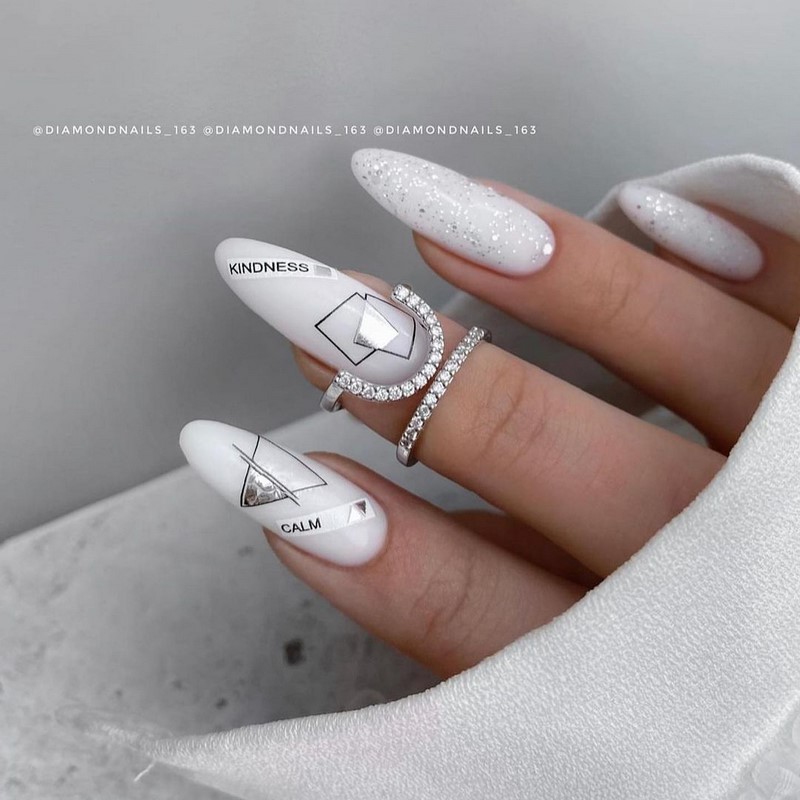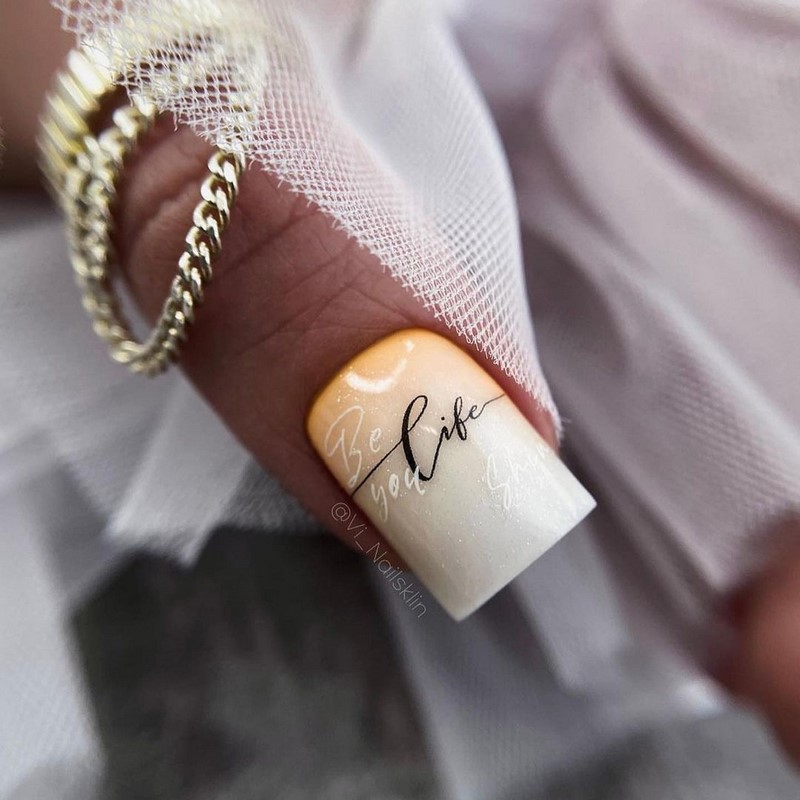 - модные цитаты и слоганы. Подберите известные цитаты или слоганы бренда и добавьте их на ноготь, используя мелкий шрифт или наклейки;