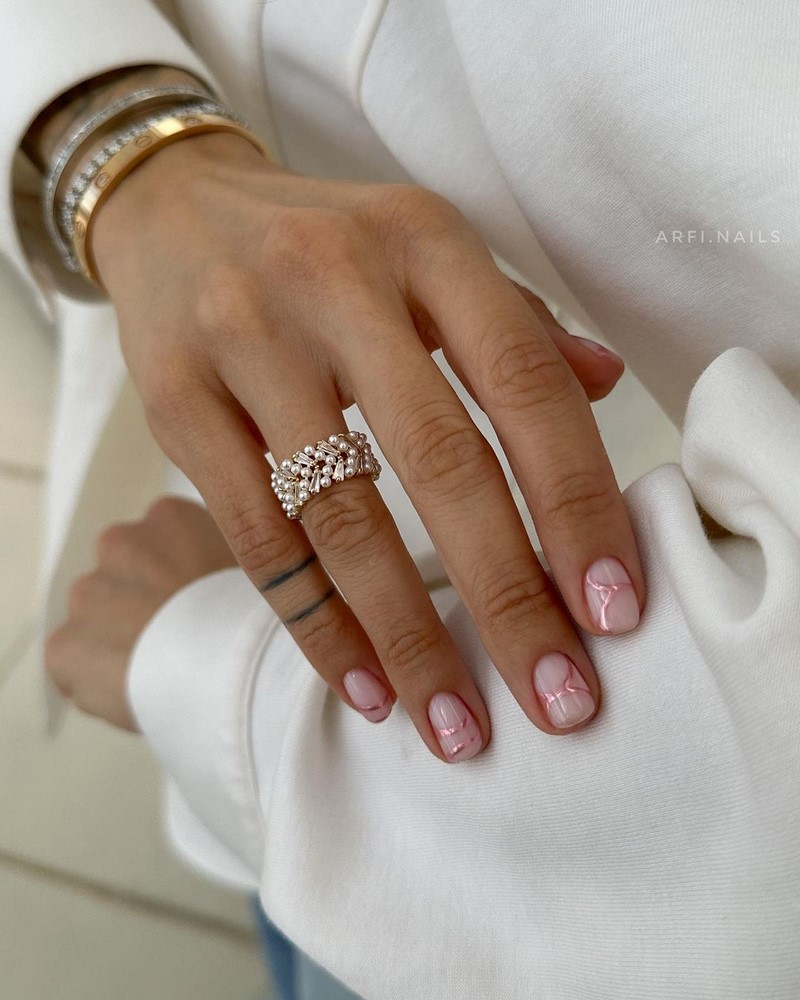 Обычные перламутровые лаки и базы стали объектом нового вдохновения. Теперь на них можно создавать рисунки, напоминающие морозные узоры на стекле. Это приносит настоящее удовольствие и открывает новые возможности для творчества в мире маникюра.