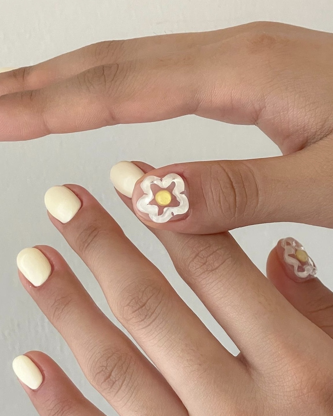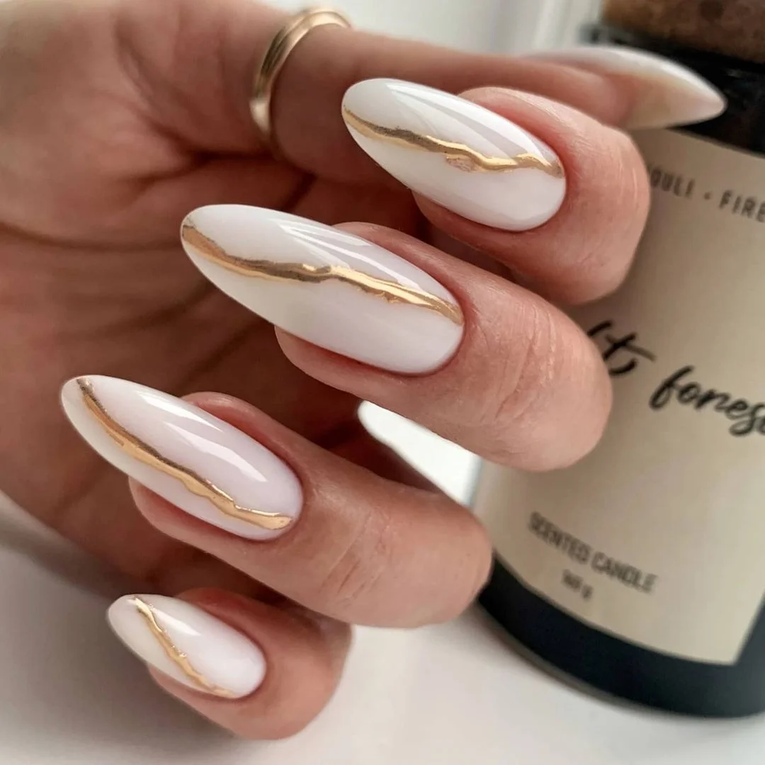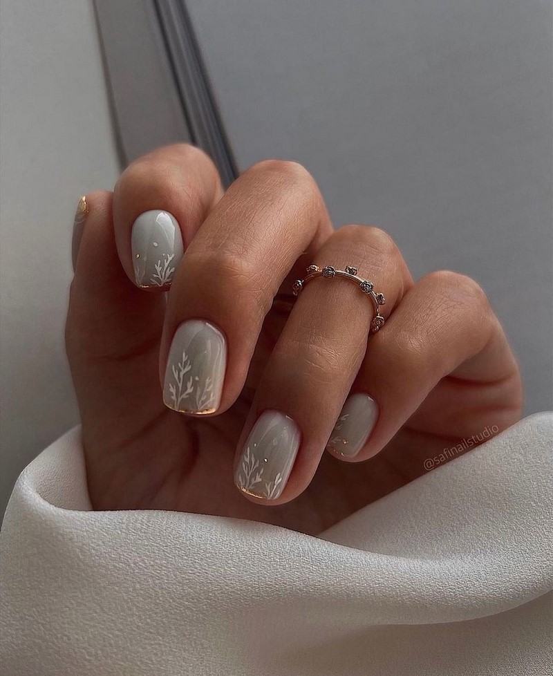 Чтобы маникюр был более естественным, предлагаем заменить белый на молочный оттенок. Молочный цвет — это нежный, светло-желтоватый оттенок, напоминающий цвет молока. Он очень популярен в мире маникюра как базовый цвет для натурального, лаконичного стиля, но также может использоваться и для создания более ярких и насыщенных дизайнов.
