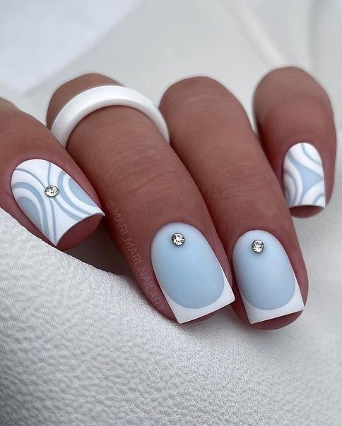 - матовый френч: создайте классический френч маникюр, но сделайте кончики ногтей матовыми. Это добавит интересный контраст;