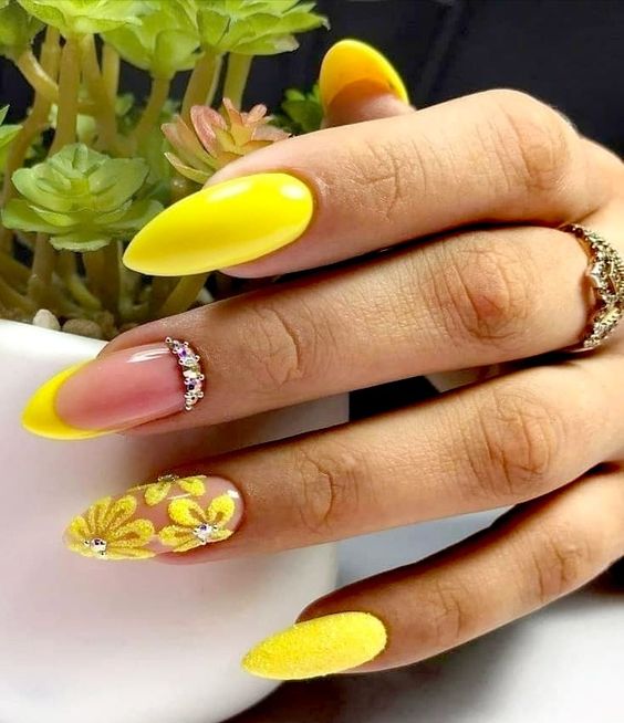 Одним из преимуществ желтого маникюра является широкий диапазон возможных вариантов дизайна. Желтый маникюр можно украсить различными узорами, рисунками и акцентами других ярких цветов. Кроме того, желтый маникюр может быть украшен глиттером, стразами или другими аппликациями, создавая дополнительные декоративные эффекты.
