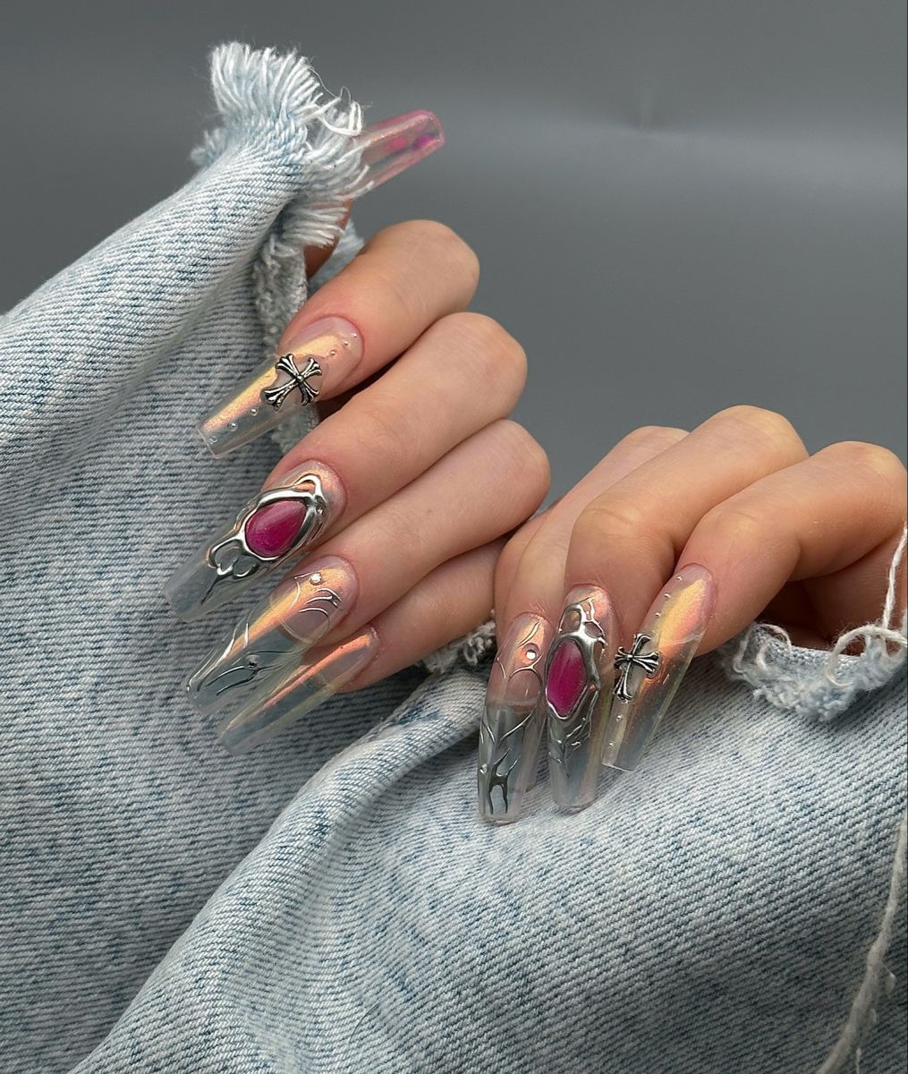 Одним из отличительных признаков маникюров 2024 года является сочетание различных текстур. Это не только матовые и глянцевые топы, но также и использование других фактурных покрытий и элементов, таких как металл, мох, текстиль и прочие материалы.