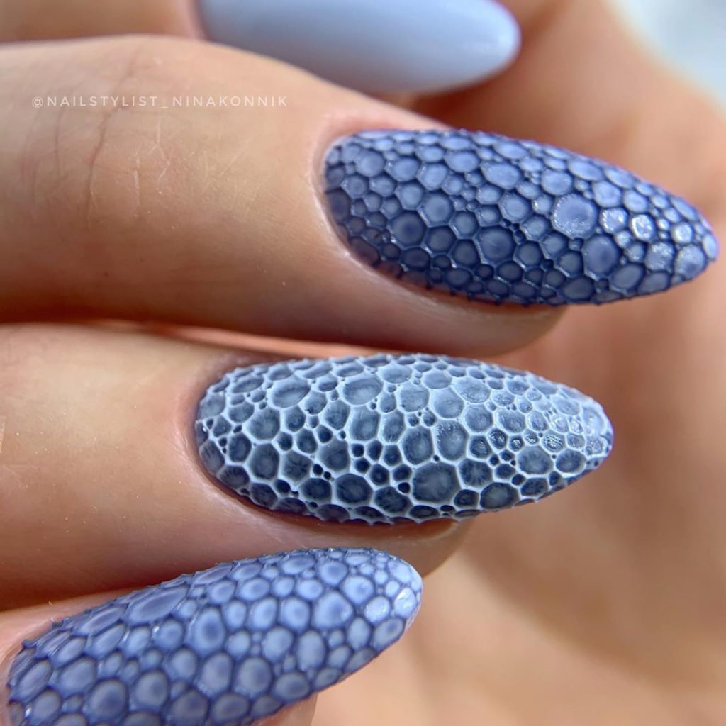 Пенный маникюр подойдет для тех, кто ищет эксперименты с текстурой и уникальным дизайном. Это интересный способ добавить игривость и оригинальность к вашему образу.