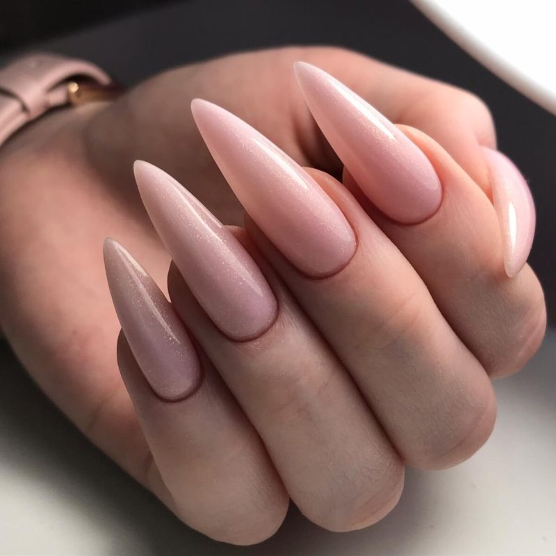В светлом варианте экстравагантная форма может быть и вовсе незаметной, так что светлый вариант заостренного маникюра – отличный вариант для тех, кто только желает попробовать для себя такой вариант. Для более дерзких особ, которым хочется изюминки — можно сделать и в черном варианте, тематически акцентировав один.