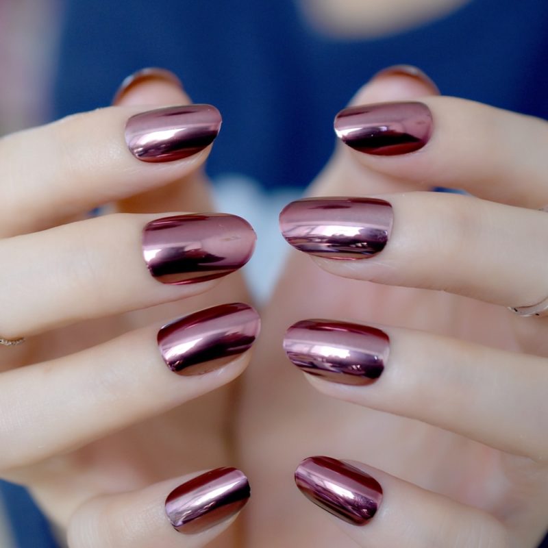 Металл на ногтях – это модно и стильно. Подходит для женщин с характером. Самые популярные вариации: медь, золото, хромированный, с синим отливом. В металлике можно сделать практически любой цвет и это будет ярко, модно и стильно. Изысканно будет смотреться, если один ноготь сделать в стиле металлик, такого же цвета, как остальные в обычном глянцевом или матовом варианте.