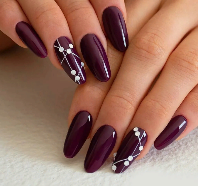 Геометрические рисунки на однотонных ногтях