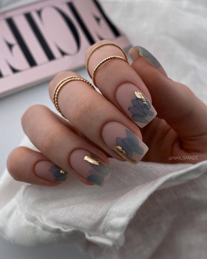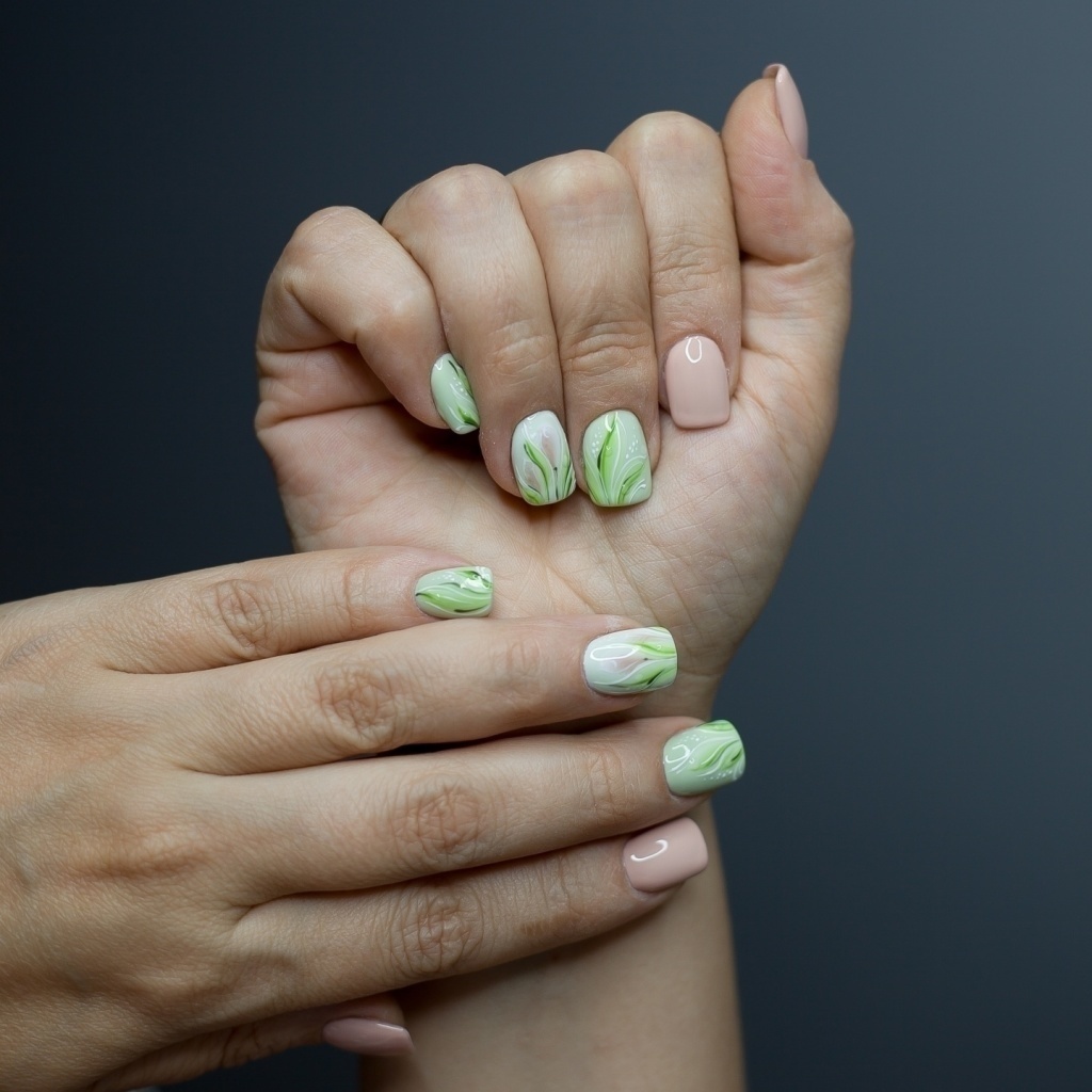 не хотите делать дизайн с четким рисунком? Обратите внимание на маникюр с разводами. Они могут быть четкими или нежными акварельными. На нейтральной основе более яркие разводы смотрятся стильно и очень эффектно.