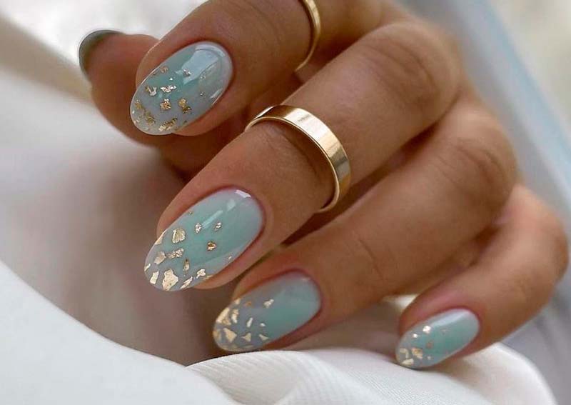 Большинство нейл-арт мастеров рекомендуют своим клиенткам в этом сезоне обратить пристальное внимание на такой материал как фольга. Ее блеск довольно сдержанный по сравнению с блестками или стразами, а вот маникюр получается очень эффектным. С фольгой довольно просто работать. Кроме того, не требуется никакой аккуратности или строгих линий. На нюдовой или пастельной основе можно использовать золотую, серебряную или цветную фольгу.