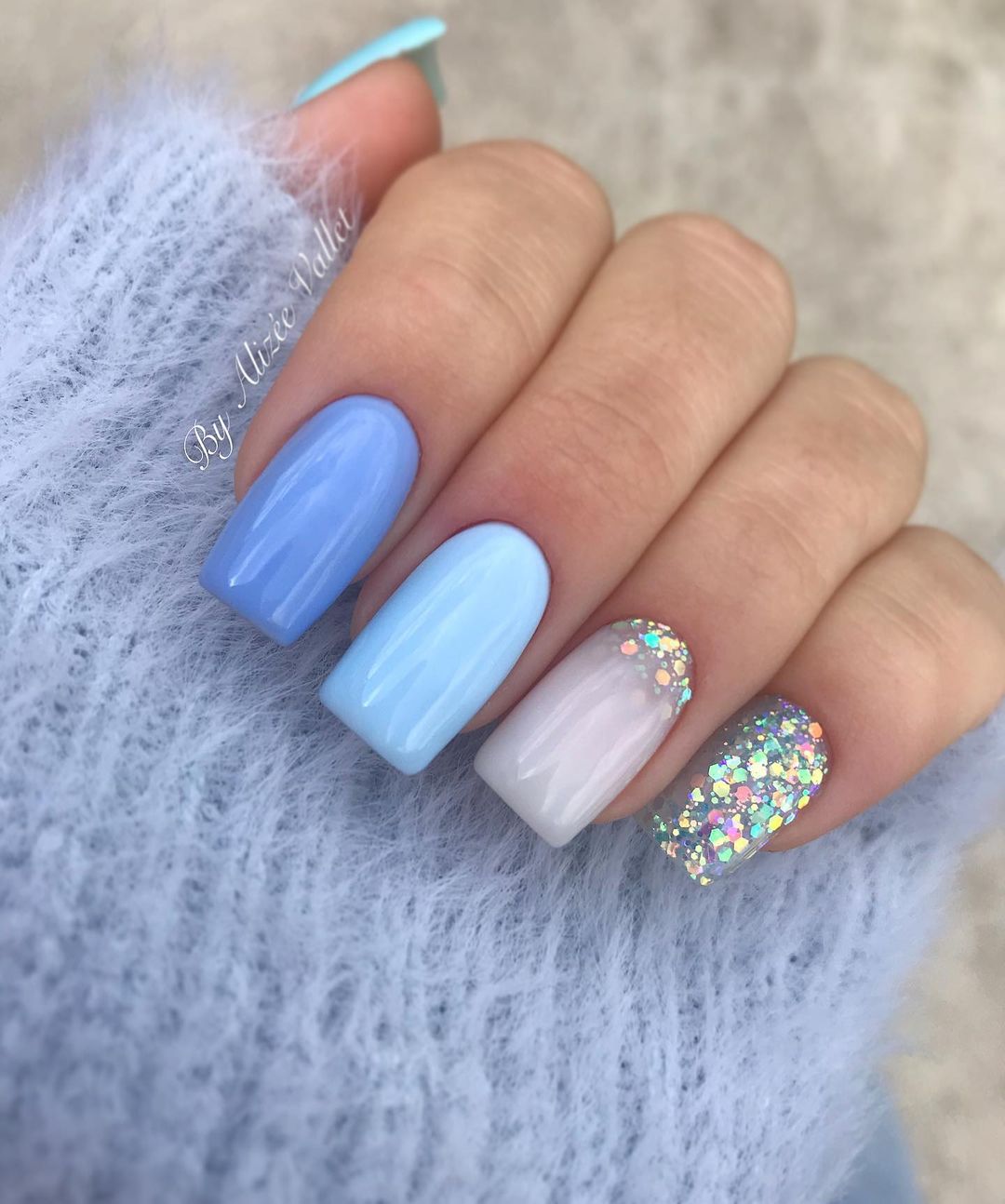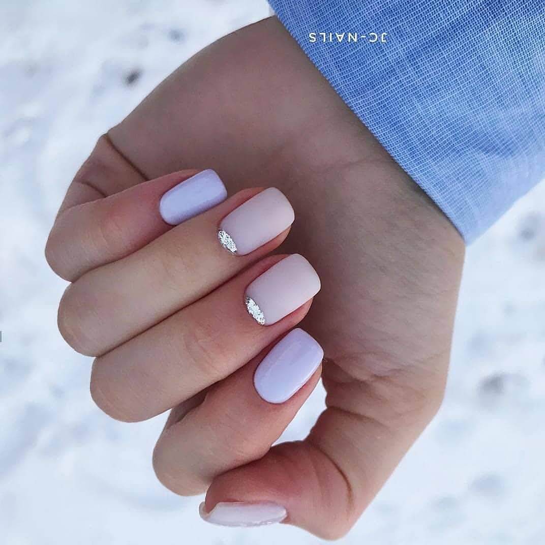 Зимой нежный маникюр можно создать с помощью холодных оттенков. Здесь не лишним будет использовать лаки с блеском или магнитным эффектом, чтобы создать дизайн «кошачий глаз».