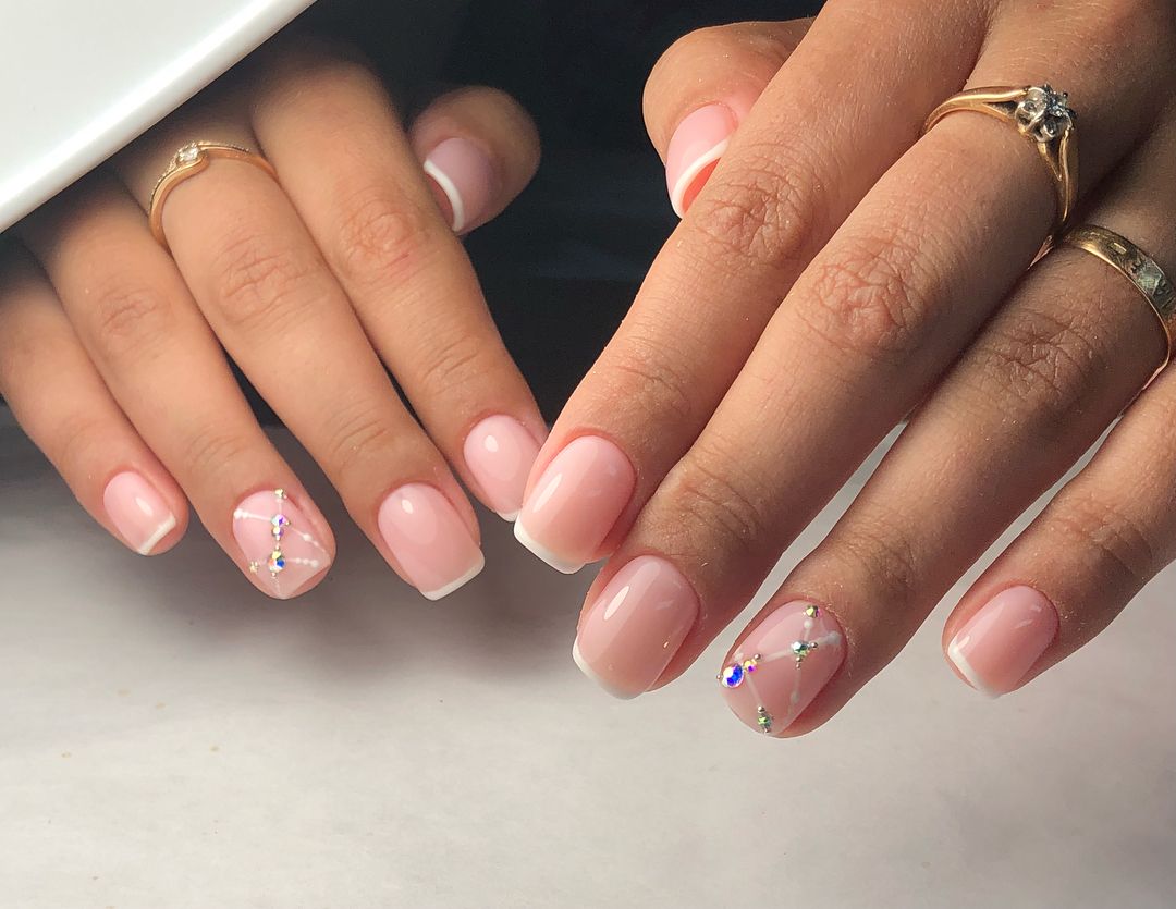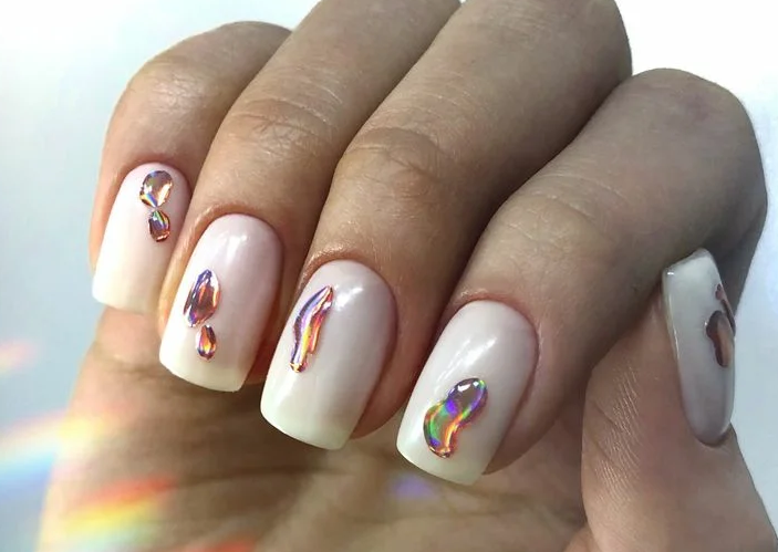 - декор. Для нежного маникюра не стоит использовать слишком активный декор, даже если база выбрана максимально нейтральная. Если используете, например, стразы — выбирайте мелкие и их количество должно быть минимальным. Мы в принципе рекомендуем ориентироваться на стиль минимализм в этом случае. Нежность в дизайне не терпит чрезмерности и пошлости.