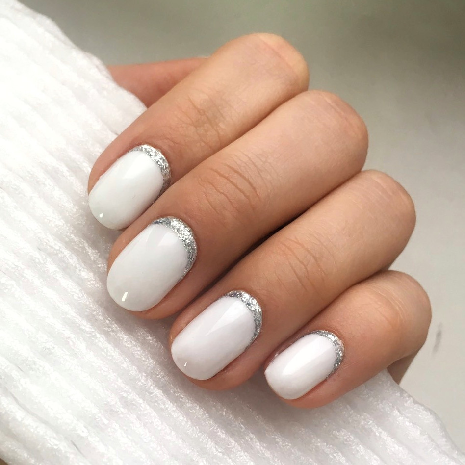 Тем, кому немного надоел френч, стоит обратить внимание на лунный дизайн. Лунку можно выделить белым или блестками. Это очень простой вариант, который можно сделать самостоятельно. А результат вас действительно поразит и порадует.
