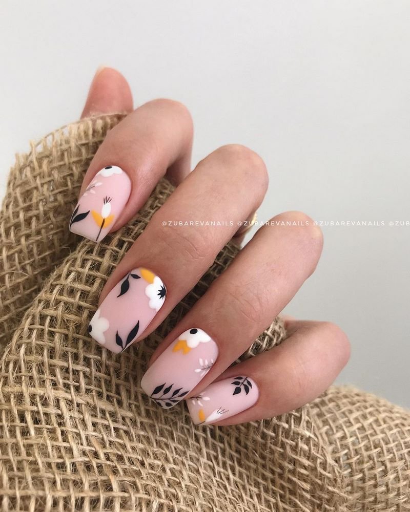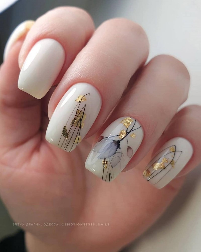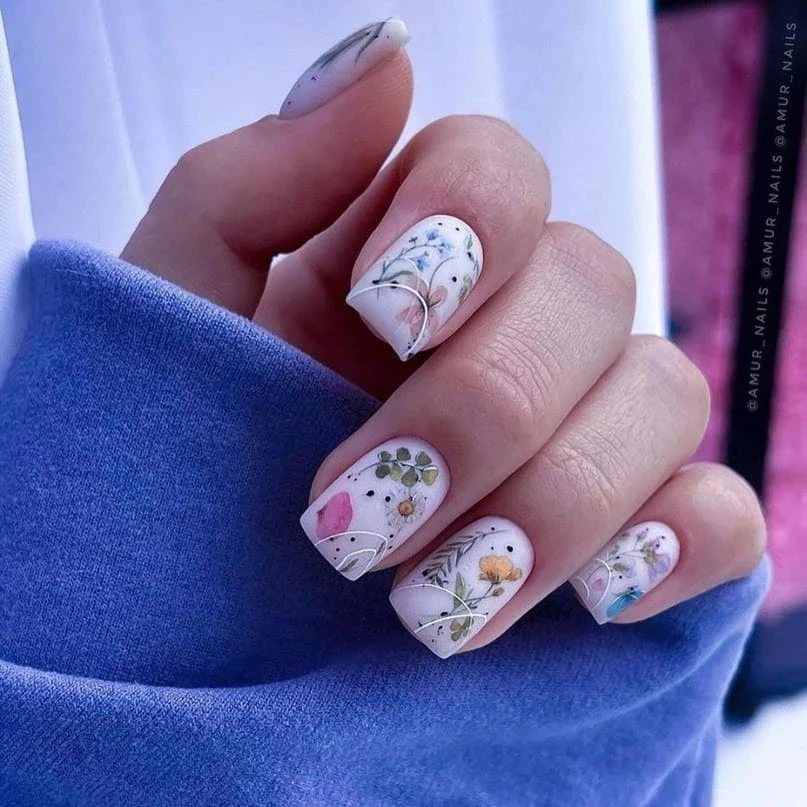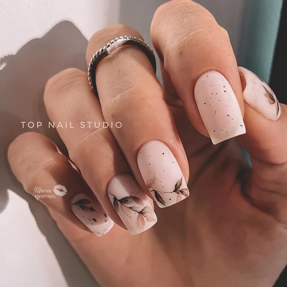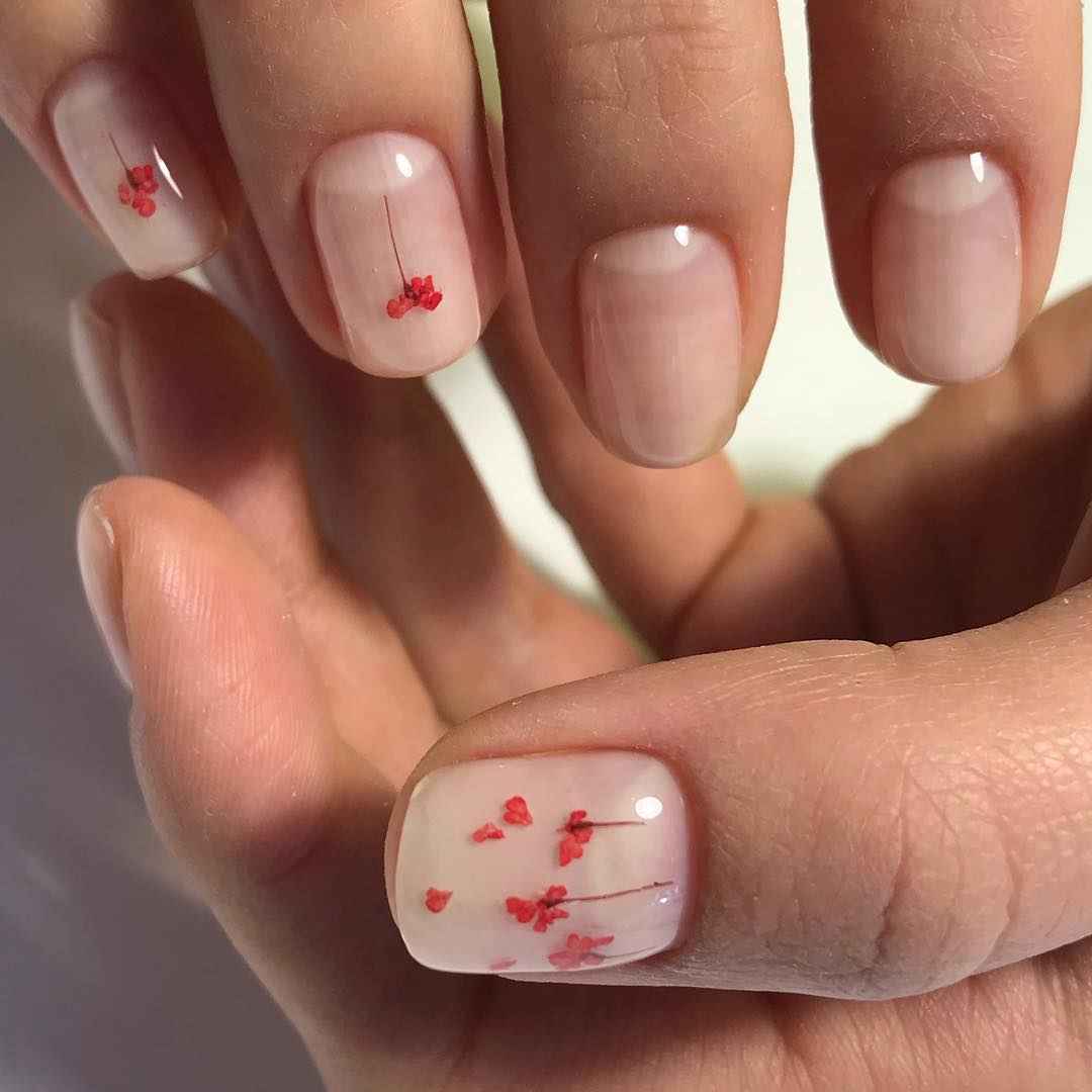 В сезоне 2026 в моде довольно активные рисунки. Главный тренд — цветочный маникюр. Для создания нежнейшего дизайна мы рекомендуем обратить внимание на минималистичные рисунки, декор с сухоцветами или прессованными цветами. Отличной базой станет молочный или нюдовый лак.