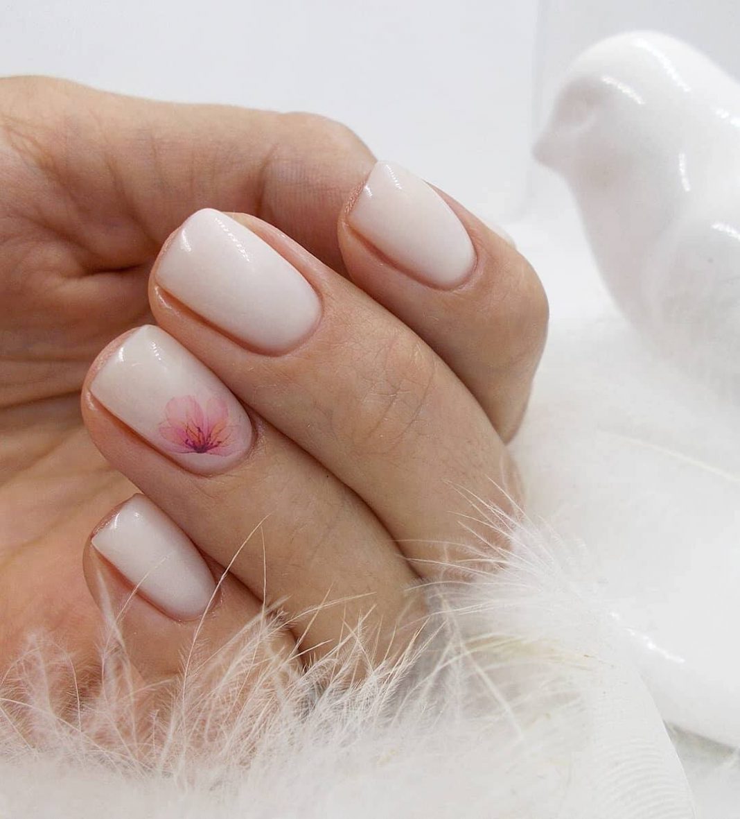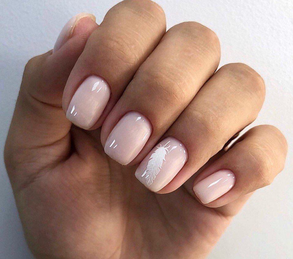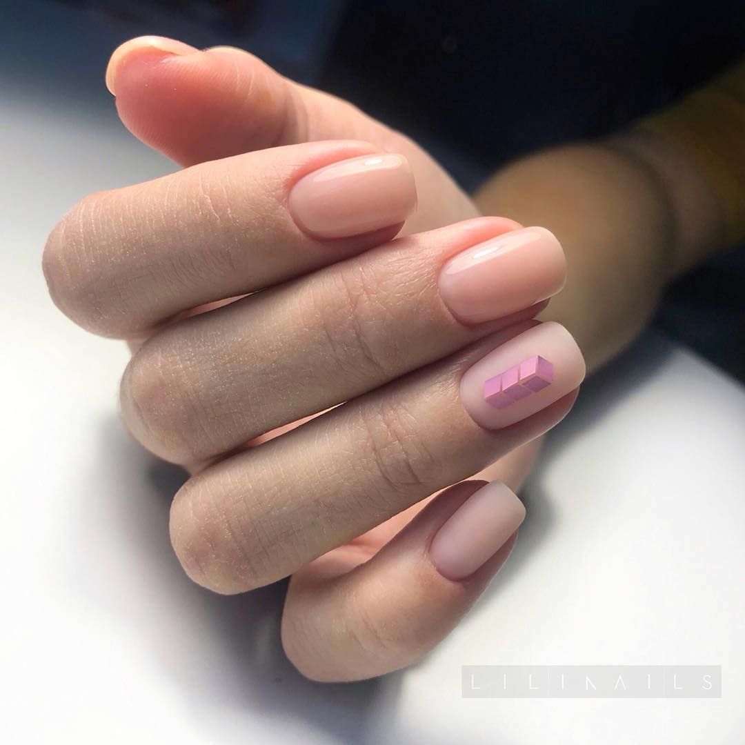 Отличительная особенность нежного маникюра — нюдовая или пастельная палитра. И это оптимальный выбор для короткой длины ногтей. Только не гонитесь за декором. Оставьте его для других видов дизайна. Здесь как никогда актуален принцип минимализма. Украсьте ноготки небольшим рисунком, наклейкой или маленьким камнем. Этого будет достаточно, чтобы подчеркнуть женственный и романтичный образ.