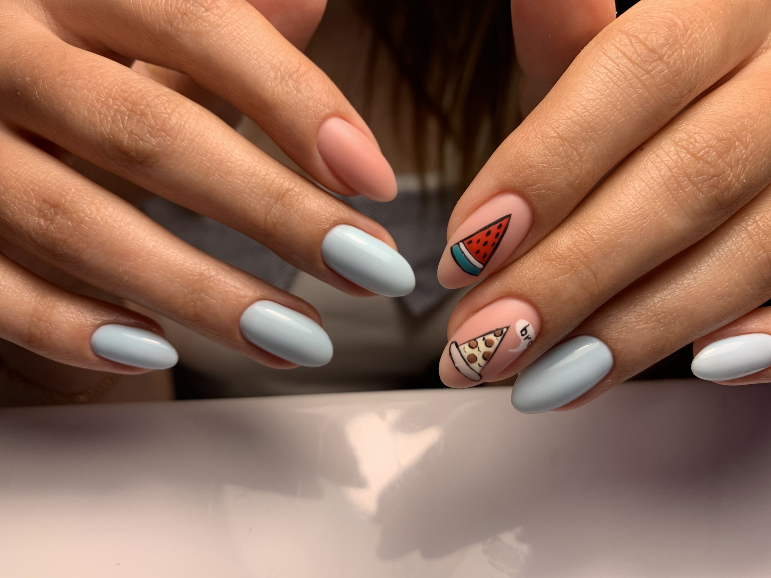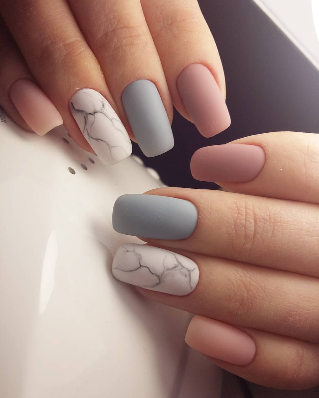 Вы, наверное, обратили внимание, насколько отличаются матовая и глянцевая текстуры. Если хотите сделать не просто нежный, но еще и очень стильный дизайн, используйте матовый топ на нюдовой или пастельной основе.
