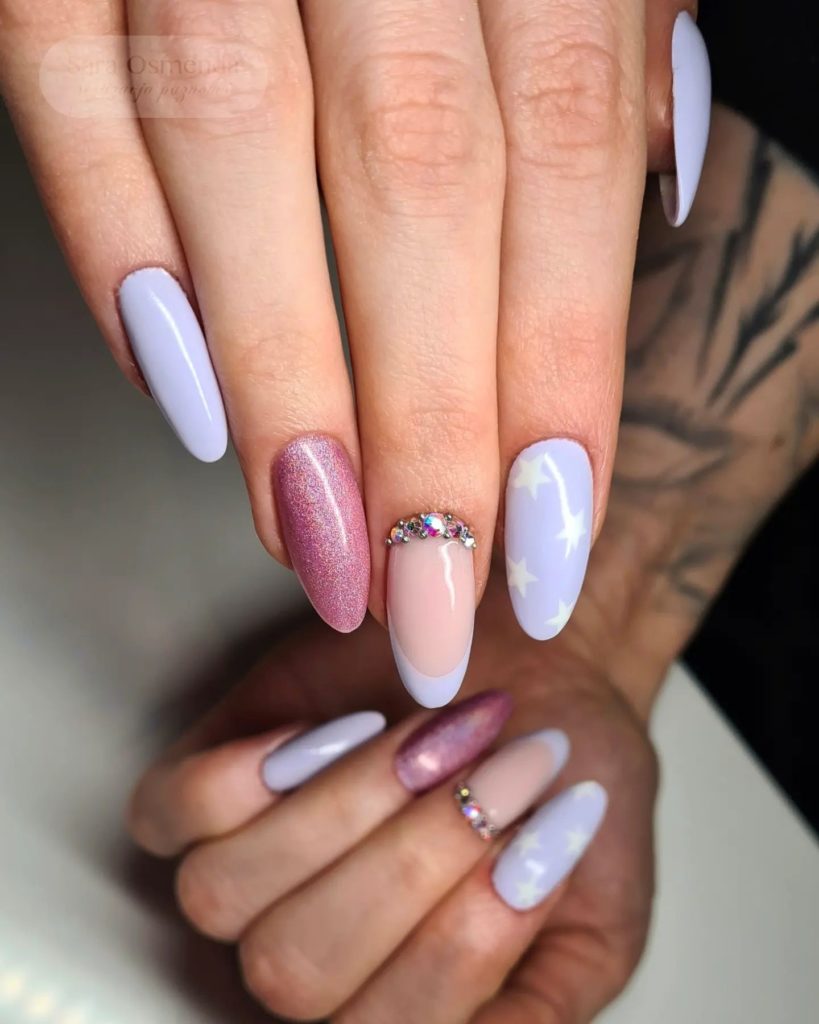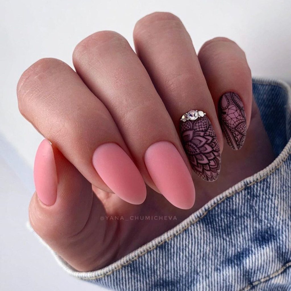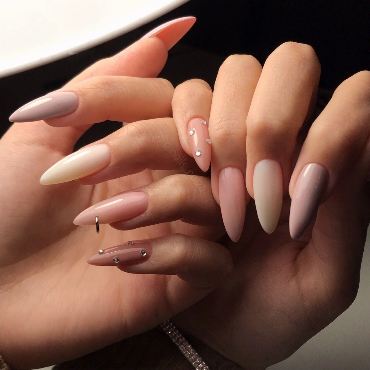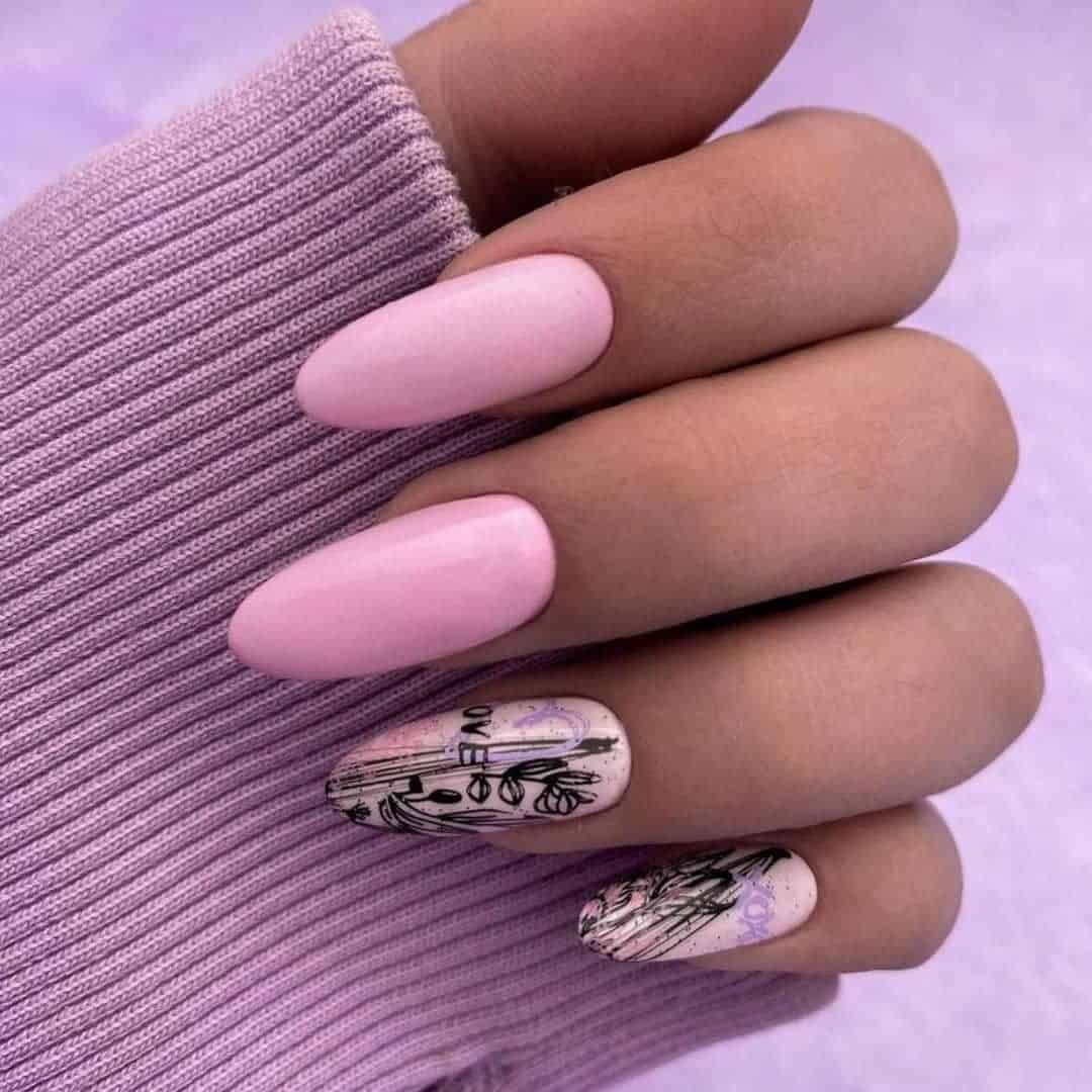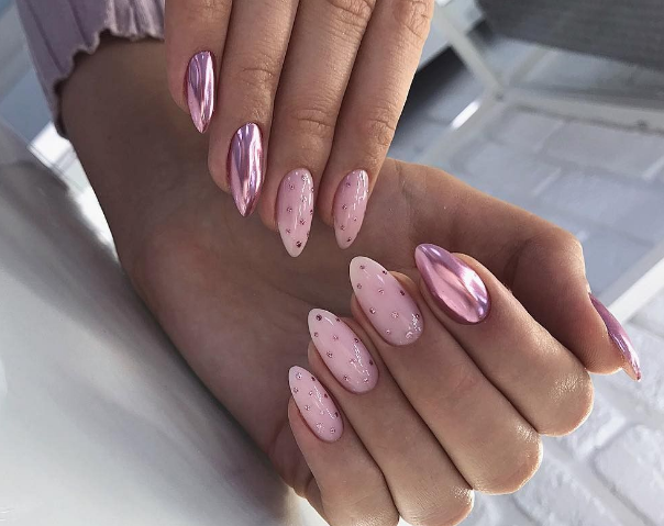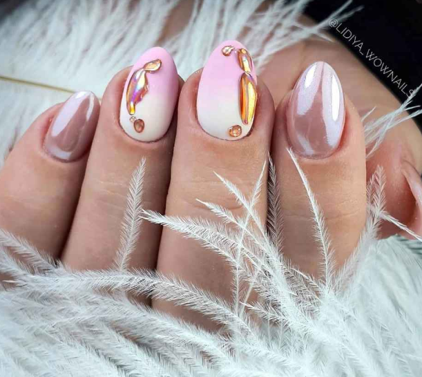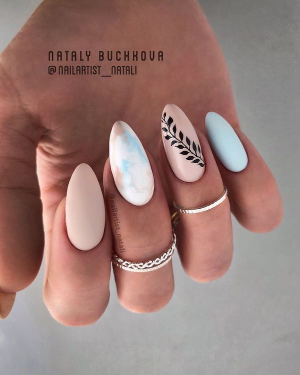 - Маникюр в стиле нежность на разную длину и форму ногтей